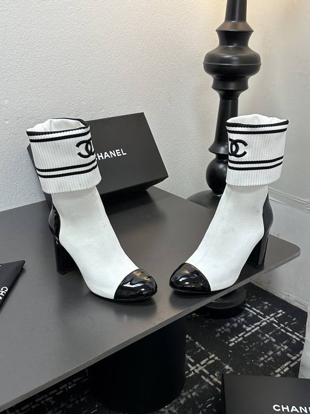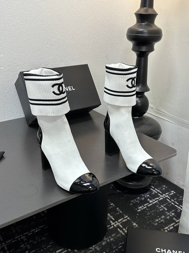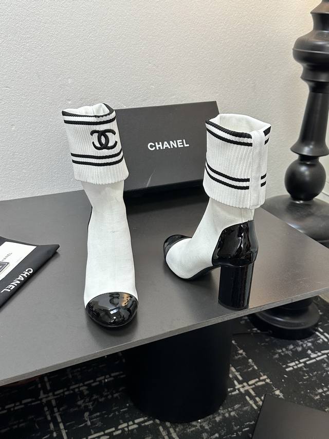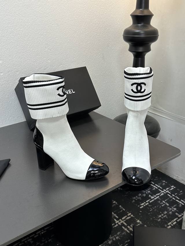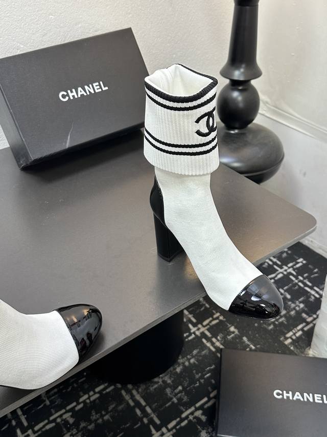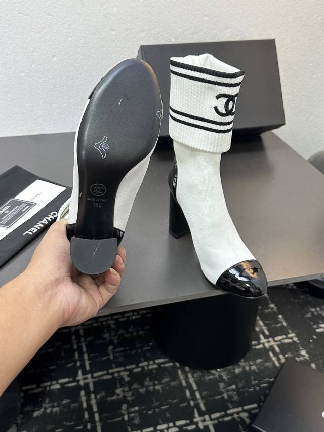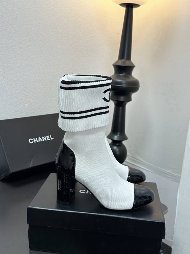 / Chanel 香奈儿小香25Ss秋冬小香粗跟袜子靴 袜筒采用针织弹力毛线,上脚舒适显瘦!靴筒可下翻调节高度,搭配各种长短下装毫无违和感,可尽情实践关于美的各种搭
