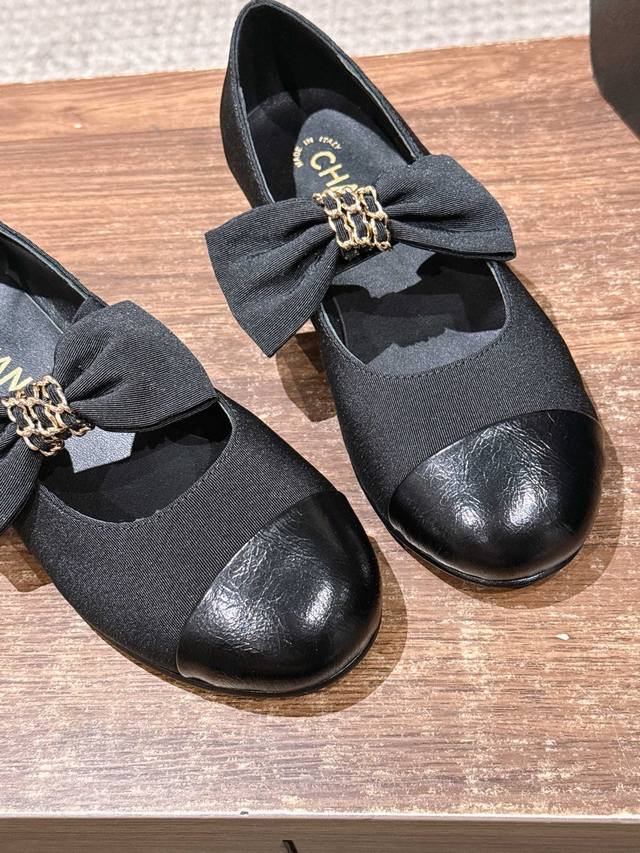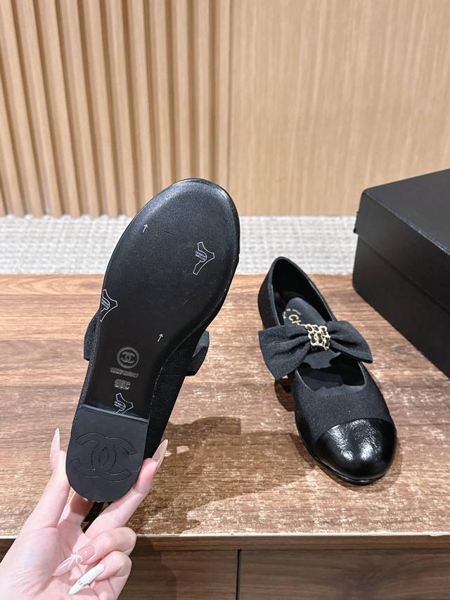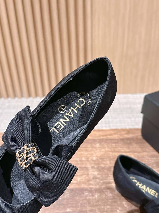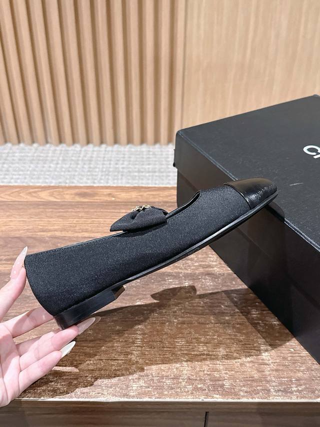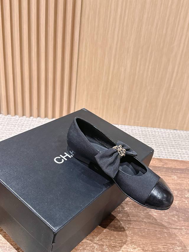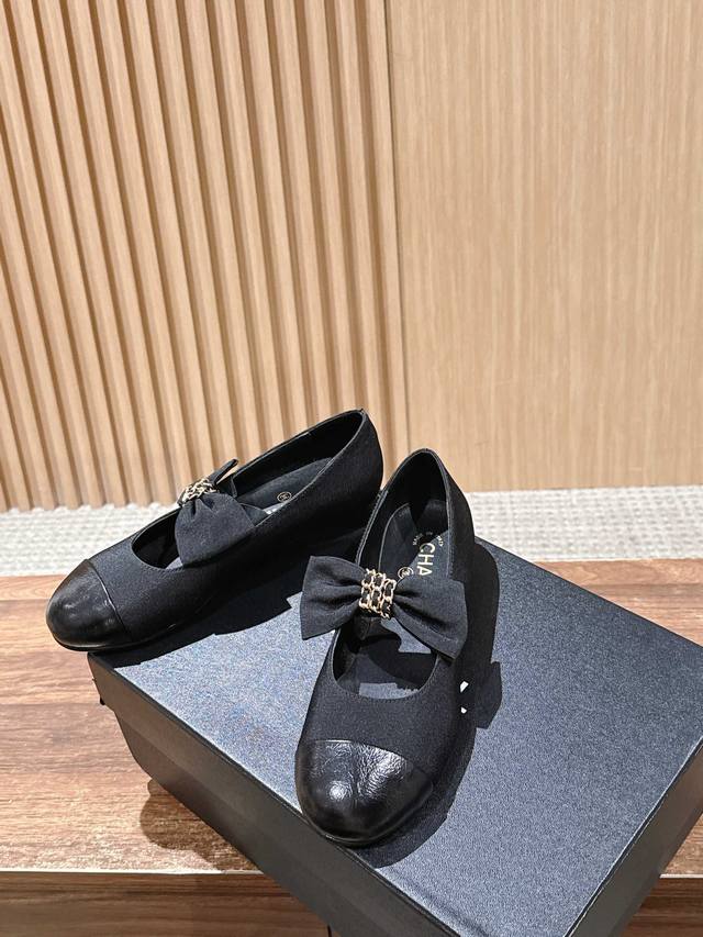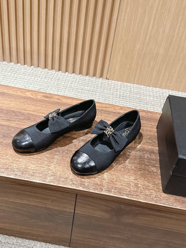 Chanel 香奈儿蝴蝶结平底单鞋 DDD 采用圆头设计,鞋头部分为亮面皮革,鞋身主体为黑色织物材质,拼接设计富有层次感;鞋面上装饰有大尺寸蝴蝶结,蝴蝶结中央搭配金属链条装饰,增添精致感与品牌辨识度,整体风格复古又不失时尚。 DDD 搭配白色百褶裙与蓝色针织开衫,展现甜美学院风格,适合学生党日常穿搭或校园活动。搭配黑色直筒裤与白色衬衫,简约干练,为职场穿搭增添一丝精致感,适合日常通勤。 DDD 鞋面:羊皮 DDD 内里:羊皮 DDD 大底:真皮大底 DDD Size:35~40 40定制不退换 DDD