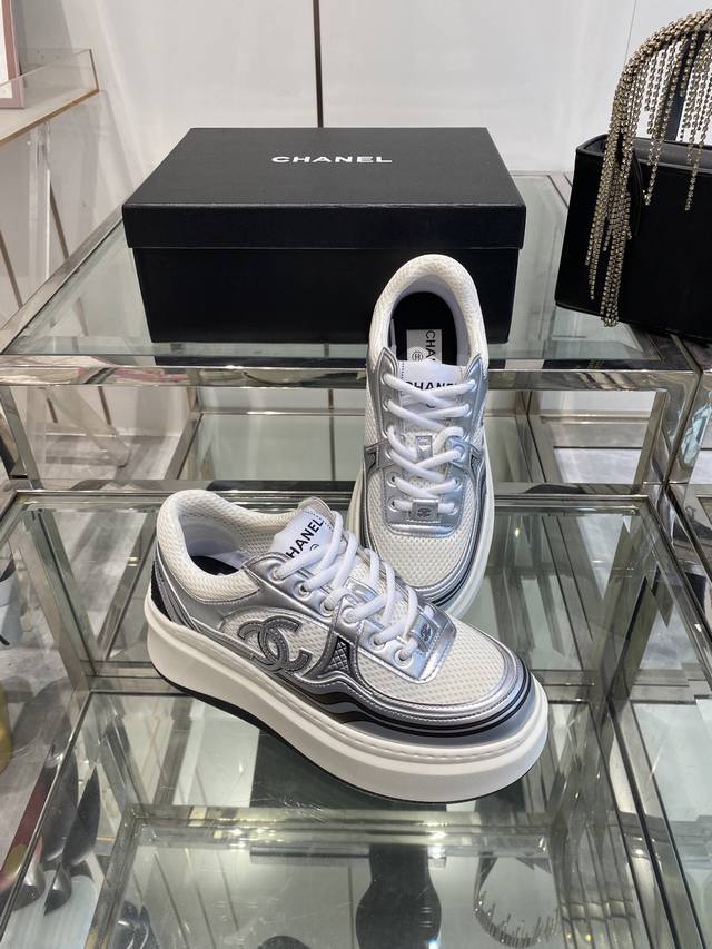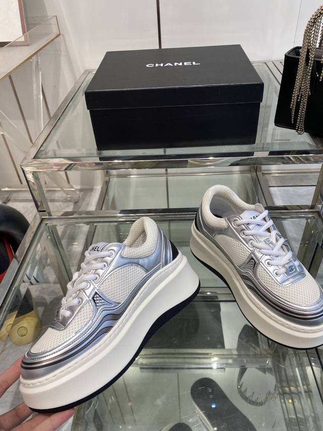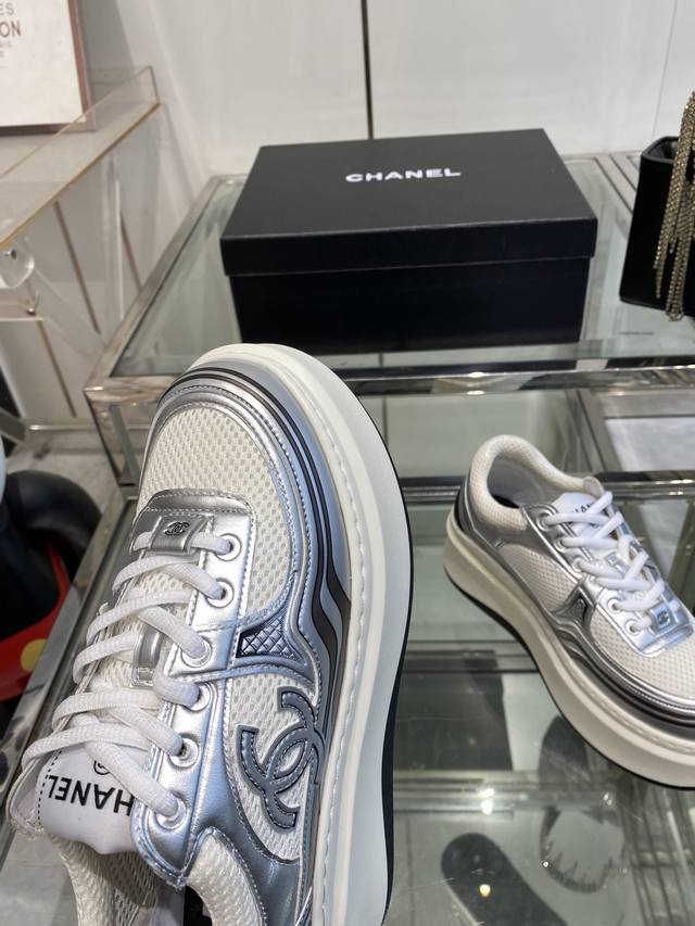 Chanel 香奈儿 新品 厚底银角大王 运动鞋 2025开春度假运动鞋 以摩纳哥国际化的海滨生活方式为灵感 打造一个全新的时尚感 鞋面采用一体化成型材料 内里