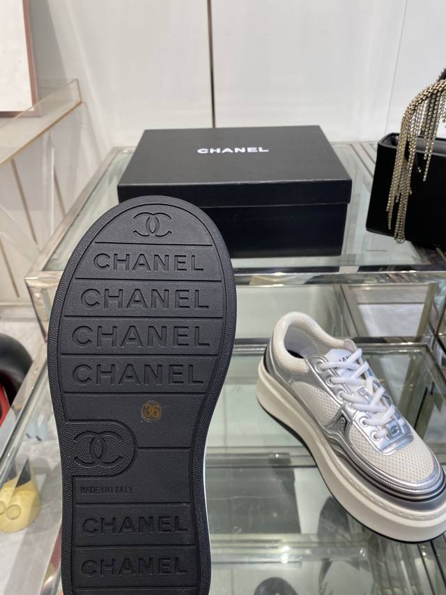 Chanel 香奈儿 新品 厚底银角大王 运动鞋 2025开春度假运动鞋 以摩纳哥国际化的海滨生活方式为灵感 打造一个全新的时尚感 鞋面采用一体化成型材料 内里定制透气网布 原版开模双色大底 码数:35-40 40定做