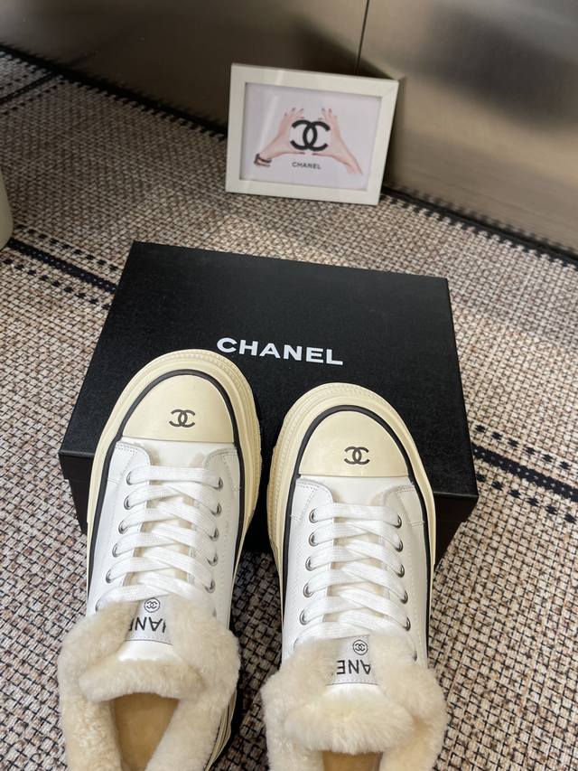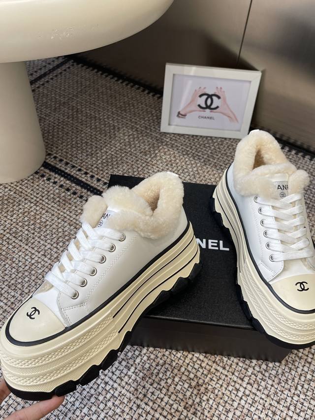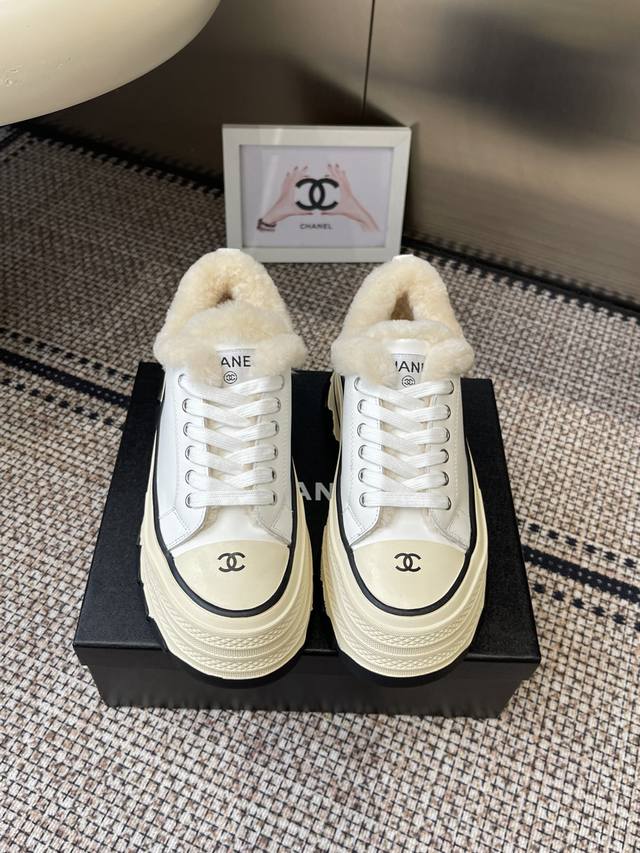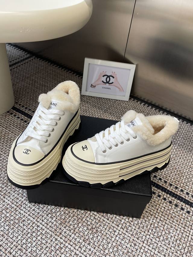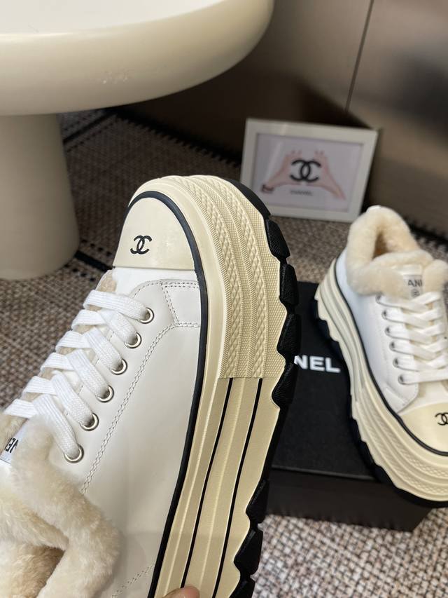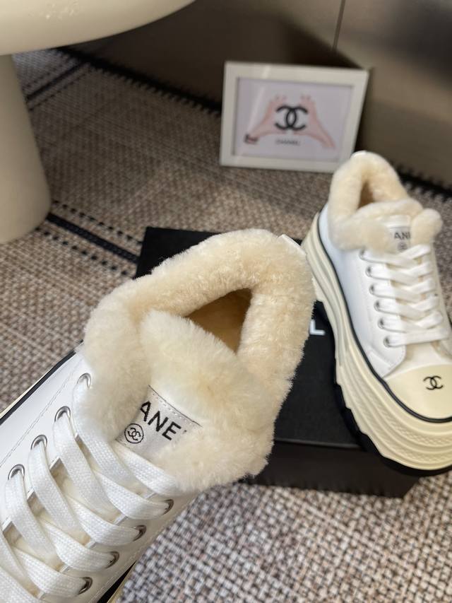 / Chanel 香奈儿 秋冬新款 厚底 毛里 休闲鞋 小白鞋 Vintage感满满 中古复刻款Get啦~小白鞋适配黑白拼接就很Chanel 配合袜子就很复古学院的