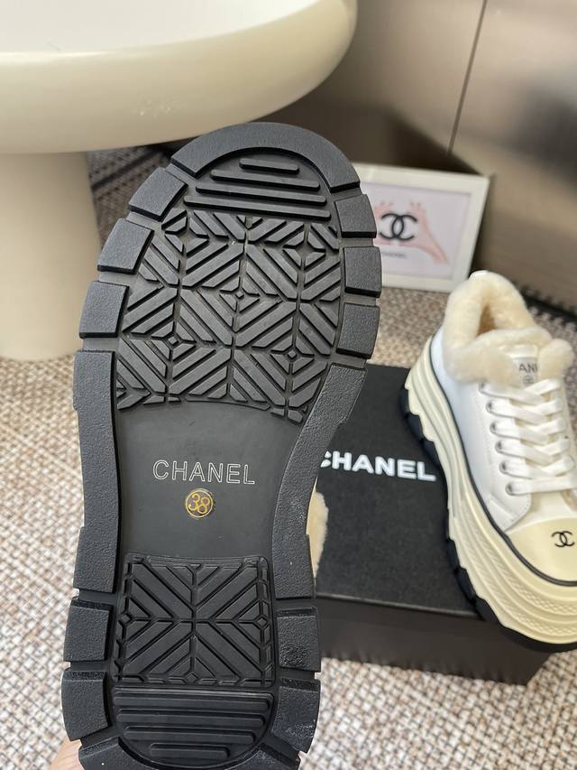 Chanel 香奈儿 秋冬新款 厚底 毛里 休闲鞋 小白鞋 Vintage感满满 中古复刻款Get啦~小白鞋适配黑白拼接就很Chanel 配合袜子就很复古学院的