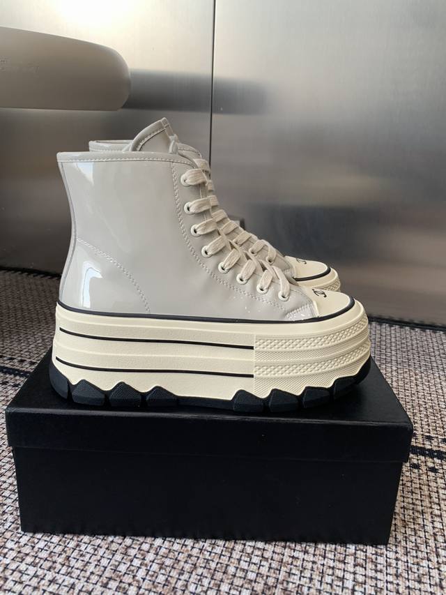 / Chanel 香奈儿 秋冬新款 厚底 高帮休闲鞋 小白鞋 Vintage感满满 中古复刻款Get啦~小白鞋适配黑白拼接就很Chanel 配合袜子就很复古学院的感