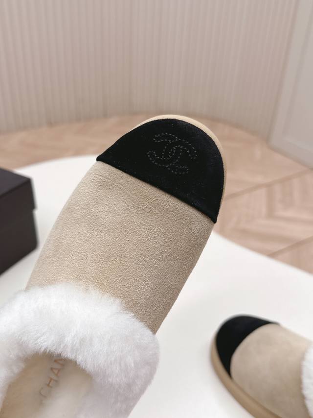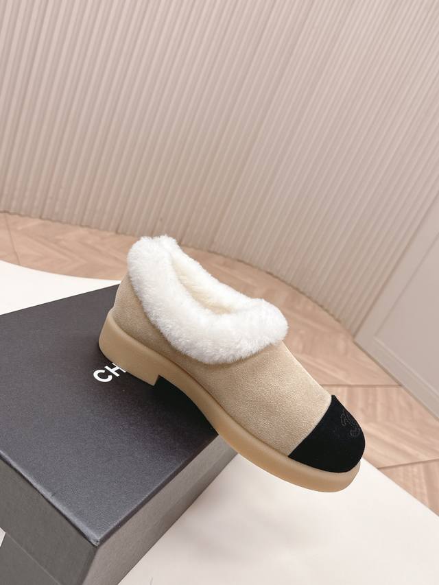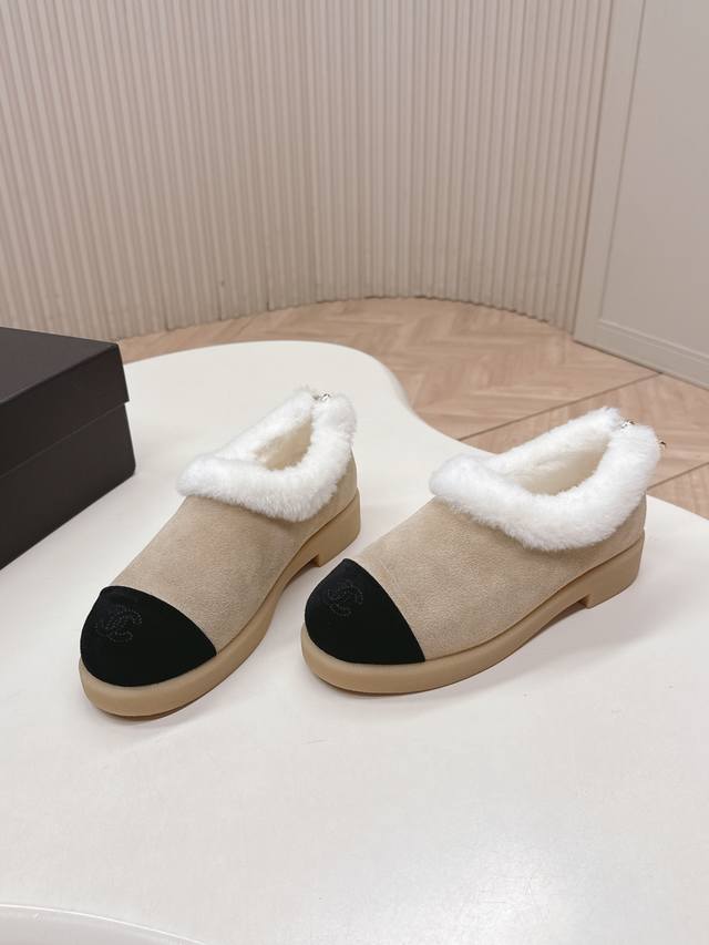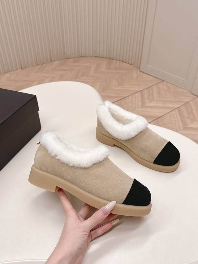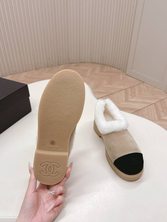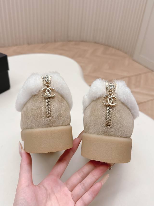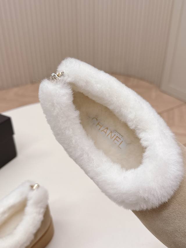 Chanel 香奈儿 秋冬走秀新款纯羊毛雪地靴 冬日甜酷少女的温暖选择雪地靴甜酷新高度,从造型到细节,把少女感与保暖性拿捏刚好,丝光牛反绒面料自带细腻高级感,鞋口羊毛绒边蓬松柔软,视觉上就很“暖”,还能修饰脚踝线条,让小腿看起来更纤细。无论是日常出街还是冬日通勤,都很合适 DDD 码数:35-41 40订做 DDD