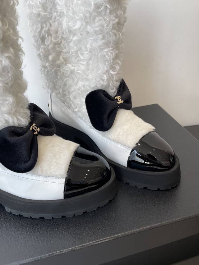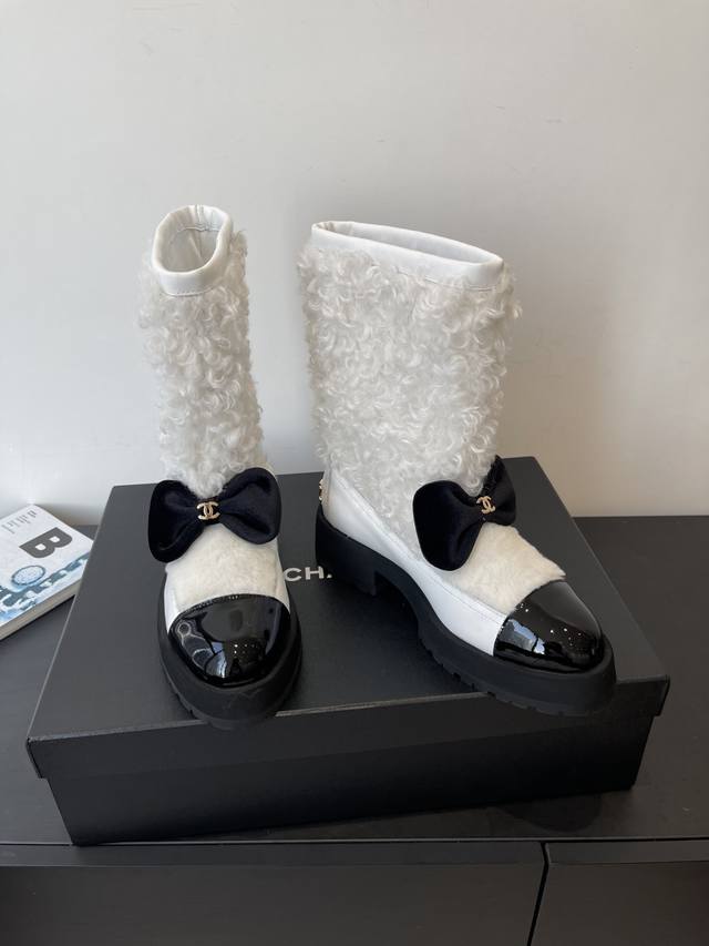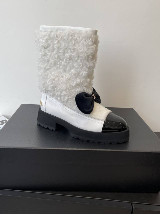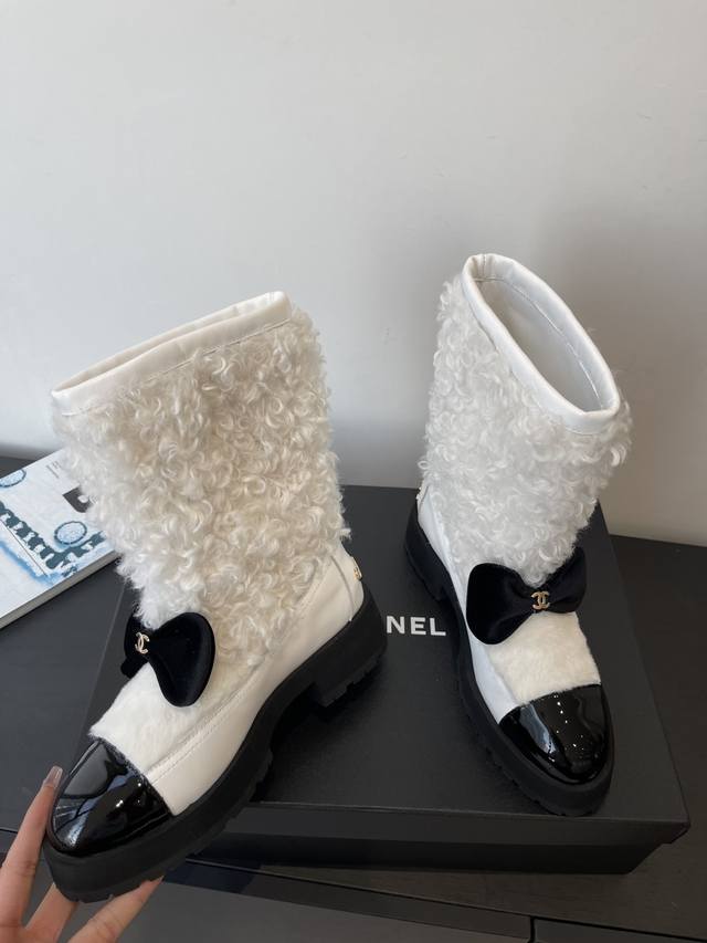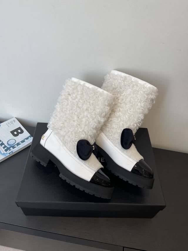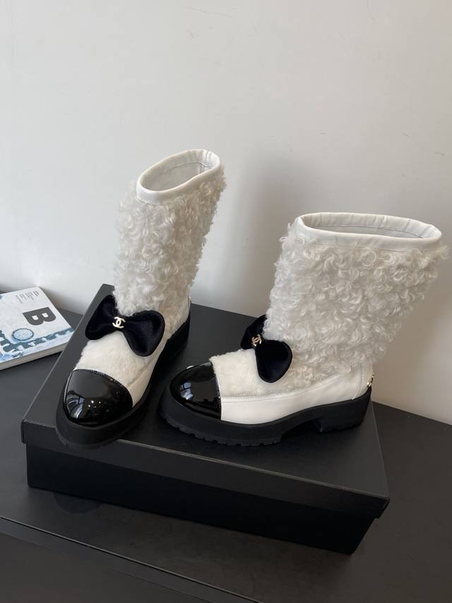 Chanel 香奈儿 25N滑雪系列蝴蝶结 羊羔毛短靴 超多明星网红种草 可帅气可温柔的小香靴子 蝴蝶结也是它家的一个很经典的元素 搭配羊毛靴筒 设计真的绝绝子