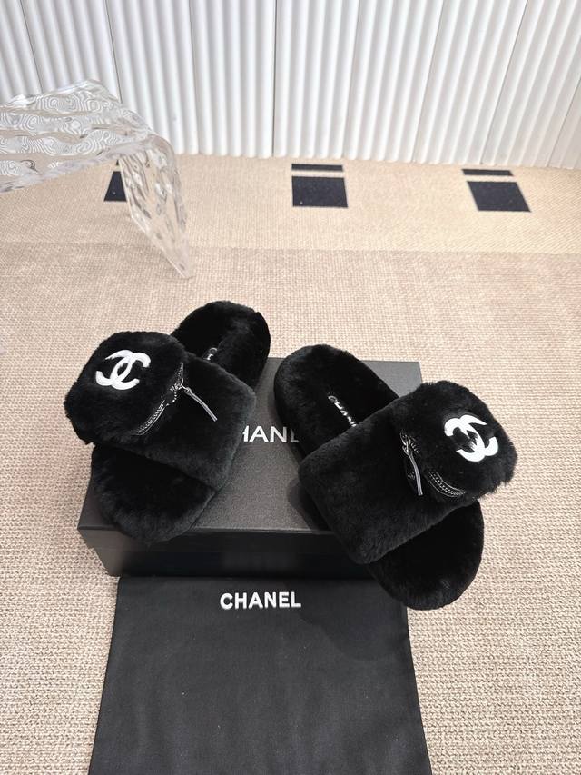 Chanel 香奈儿 25Ss早秋新款羊毛毛拖 上脚依然让我心甘情愿剁手入,购入手才会知道它的时髦,人气爆款必须得有它排名,各种博主、网红范搭配尽显眼前,超级推荐款!双层加厚大底,鞋面选用羊羔毛,内里羊毛,码数:35-40 41、42定做不退不换