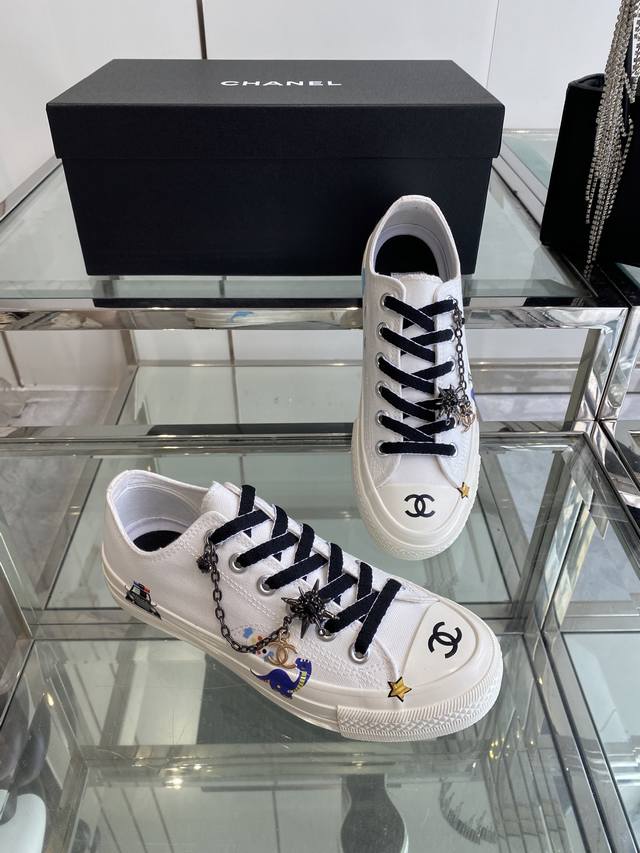 Chanel 香奈儿 25Ss最新休闲鞋 帆布鞋 网红明星小红书狂追热推 蠢萌可爱的造型带了点复古味 造型特殊 很有辨识度 显瘦显腿长 绝对实力派 穿上也很舒服