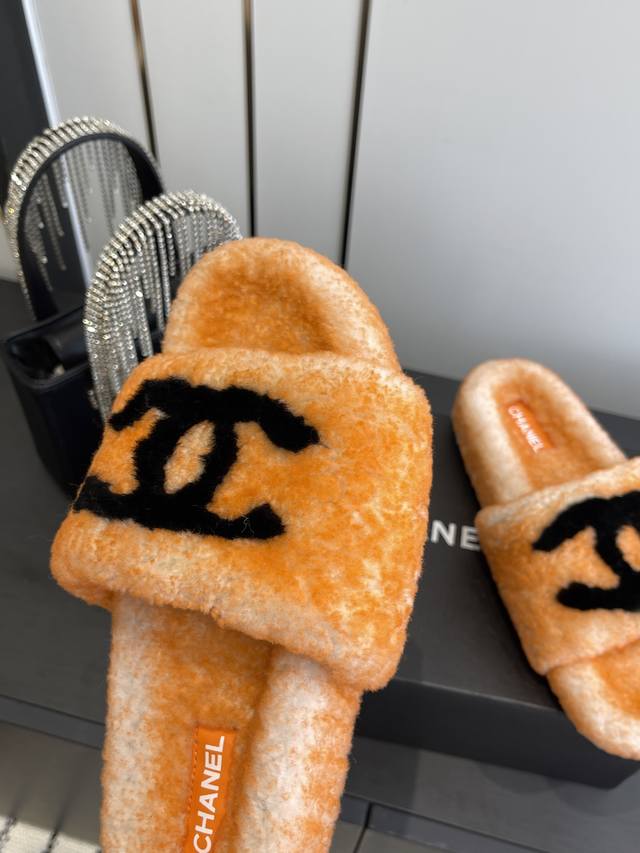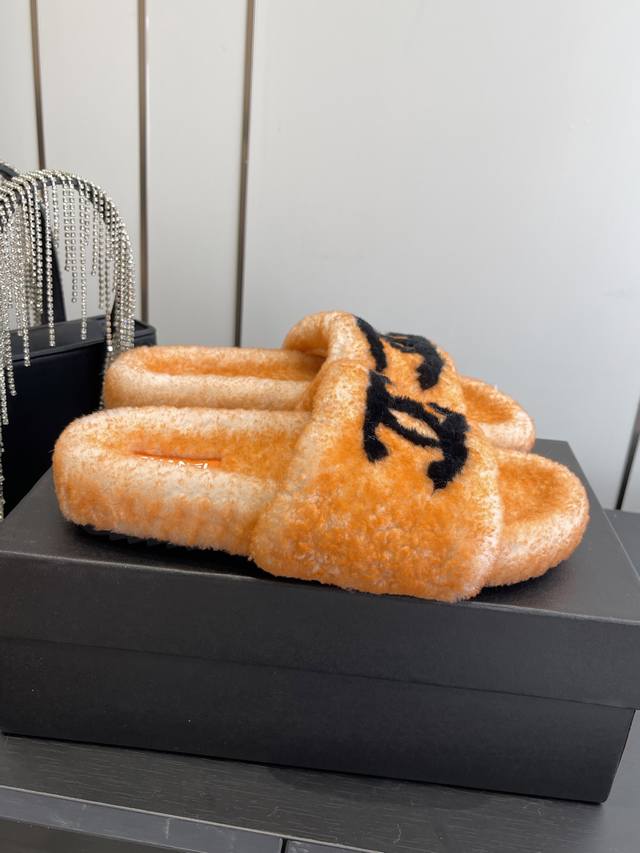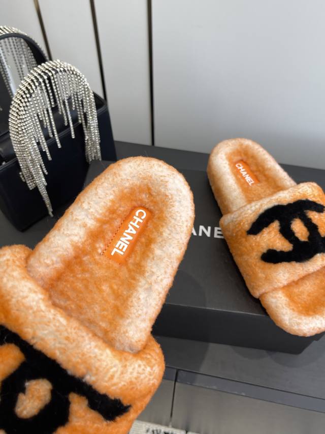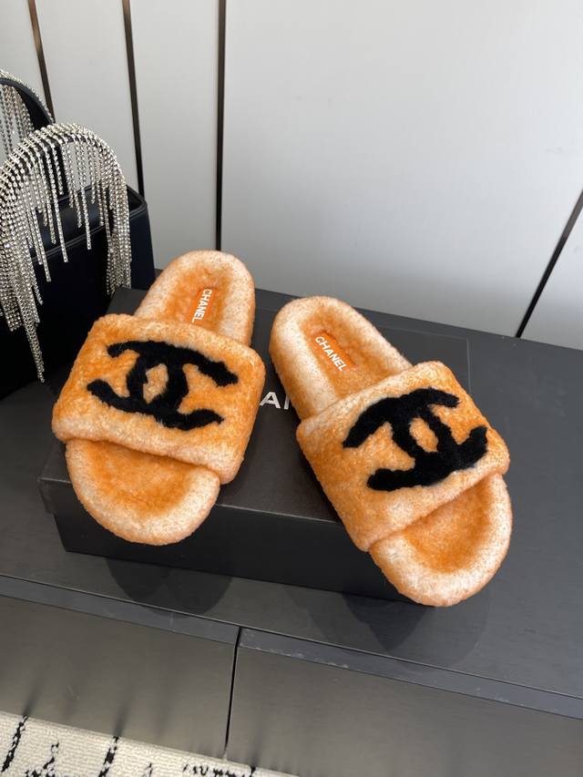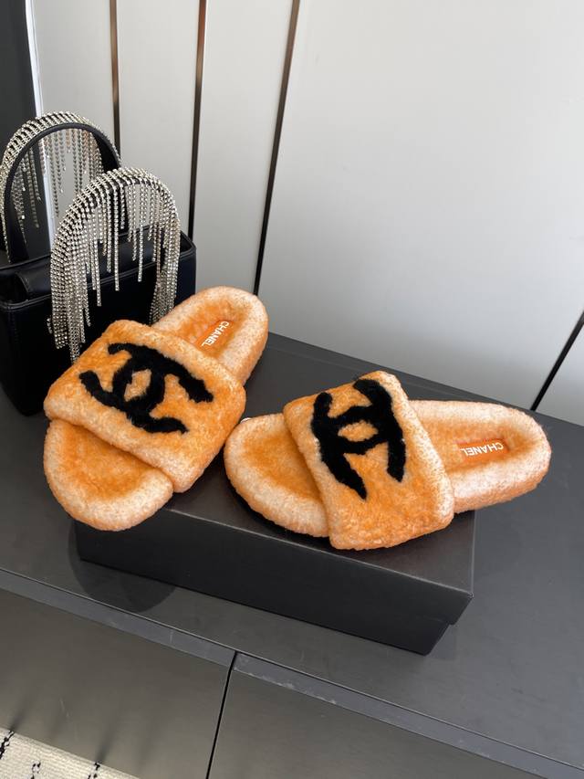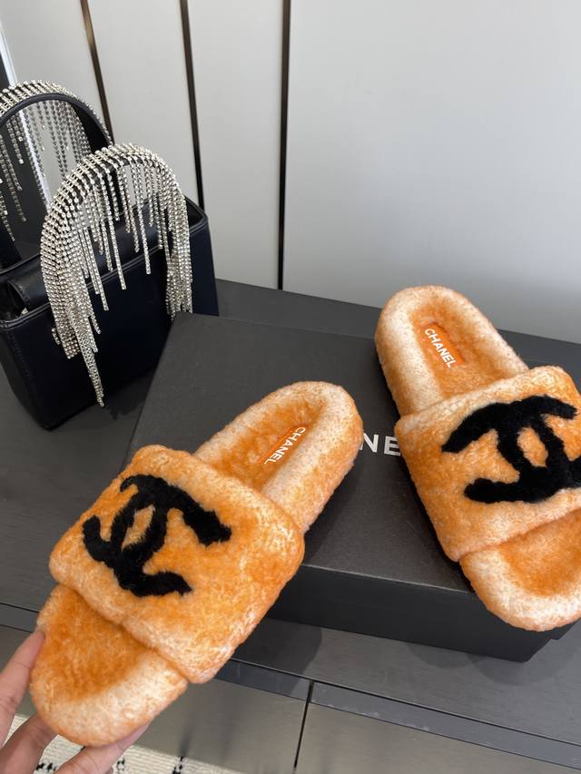 / Chanel 香奈儿 25Ss秋冬新款 双色毛拖 香奈儿厚底懒人时尚、优闲风系列潮款毛毛拖 面料:真皮羊羔毛 内里:真皮羊羔毛 垫脚:真皮羊羔毛 大底:耐磨防滑