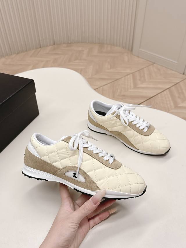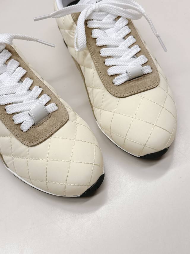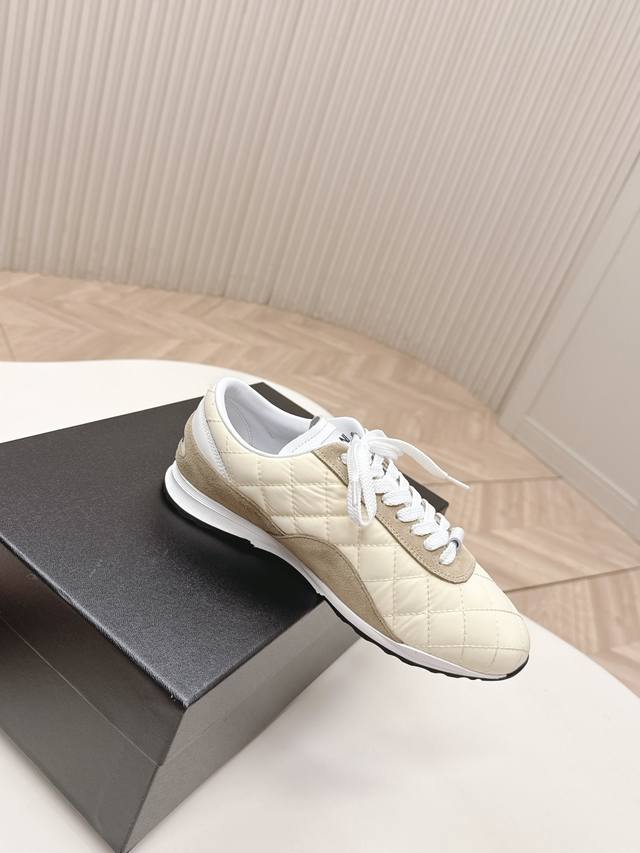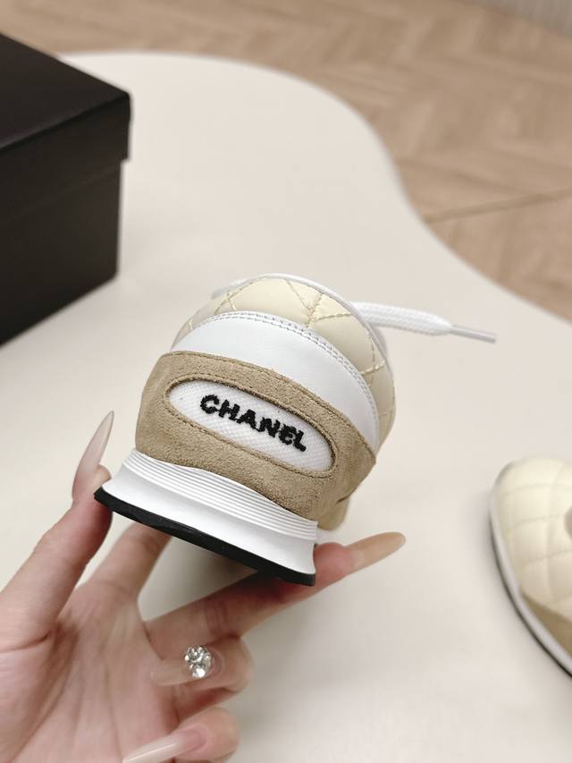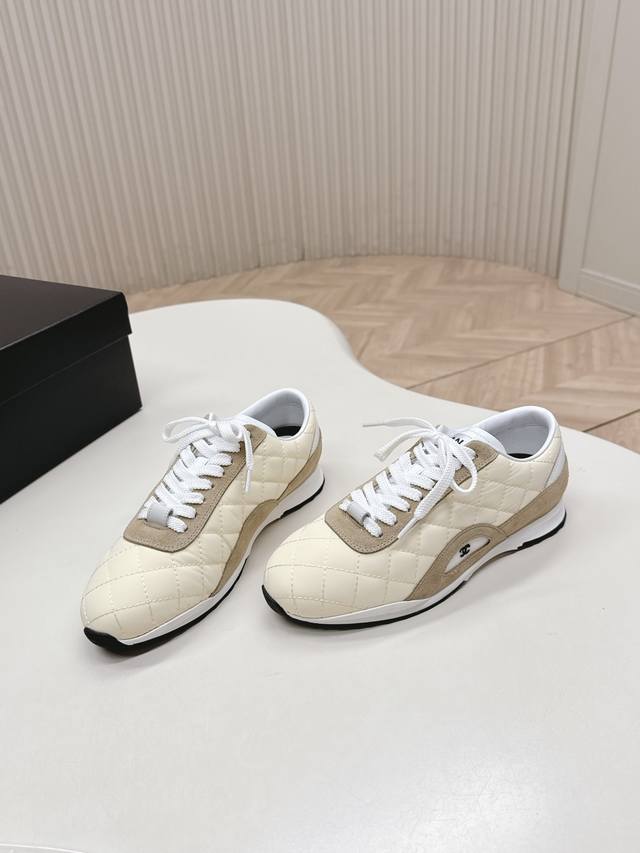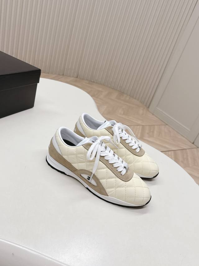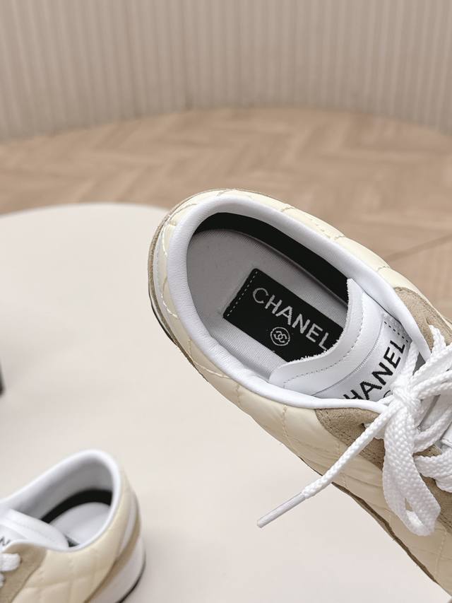 Chanel 香奈儿26C新款菱格德训鞋运动鞋 超轻便舒适的一款休闲鞋 黑色白色牛皮款 百搭小白鞋 款式搭配不会出错 牛反绒羽绒布撞色搭配 清新且活力满满 侧面