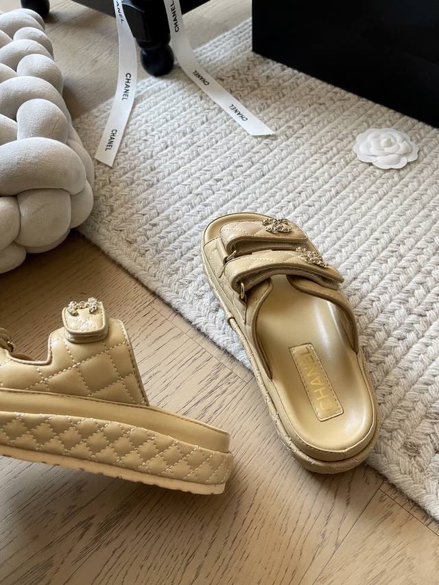 厂价 Chane*|小香25C春夏新品度假 链条字母厚底拖鞋 这一季度假凉拖系列真的超美 搭配字母装饰 简约又百搭 上脚超级美的...