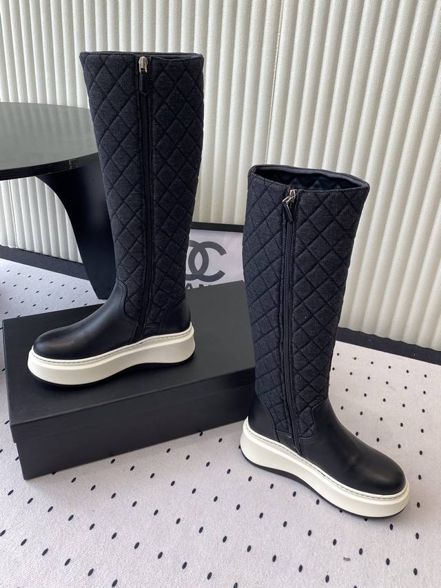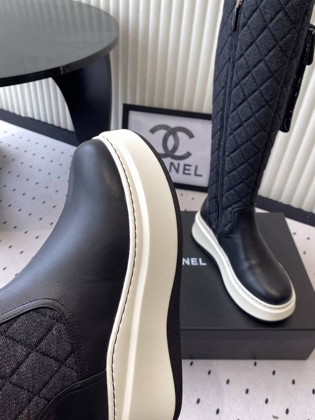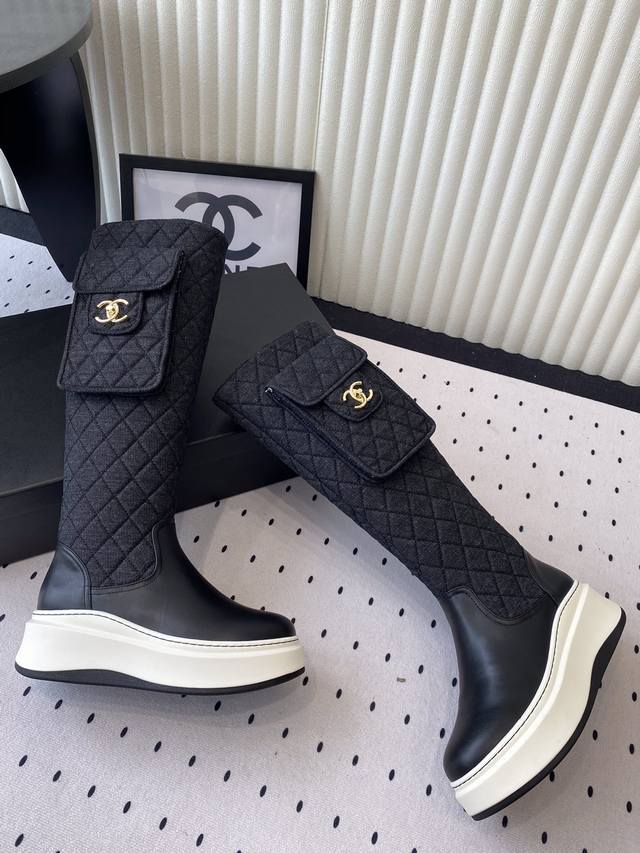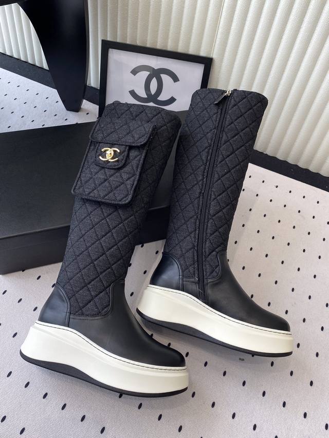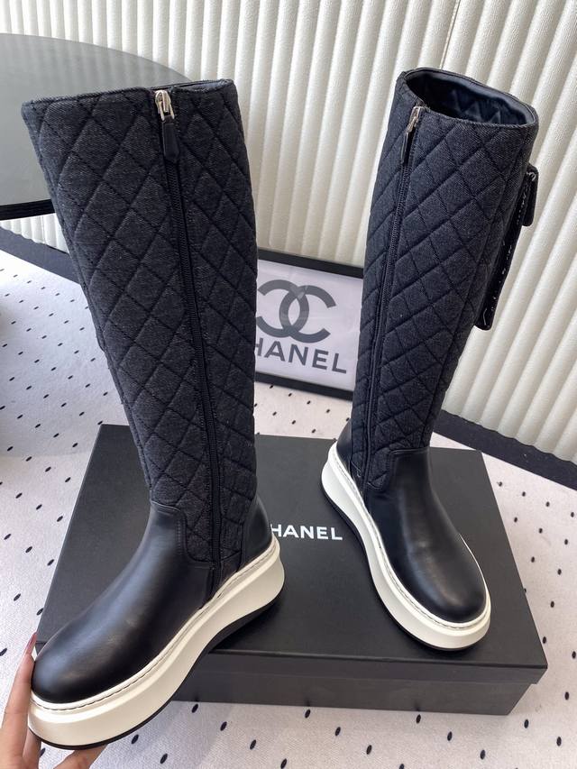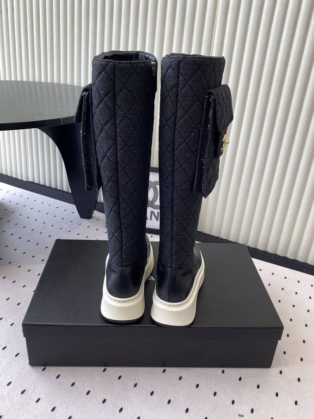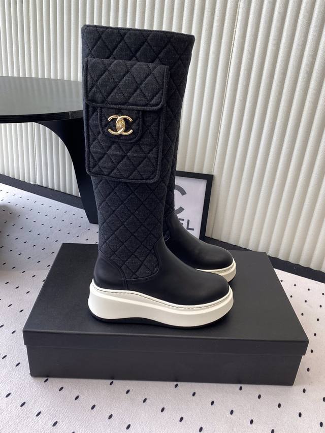 Chanel 2025S秋冬系列厚底高短靴,高筒和矮简两款分别用进囗牛皮打造,外增高度5Cm超显腿长, DDD 靴简沿用了香奈儿的经典菱格纹,加上可打开装小东西的小包包,小美美特别喜欢,这是香奈儿今年秋冬打造的爆款,加上传统内侧拉链,容易上脚,超级舒服,今年秋冬必备款 DDD 鞋面材质:进囗牛皮配菱格超纤,水洗牛仔布 DDD 一致正品 DDD 大底:原版意大利Tpu发泡大底 DDD 码数:35-39 40定做不退不换 DDD