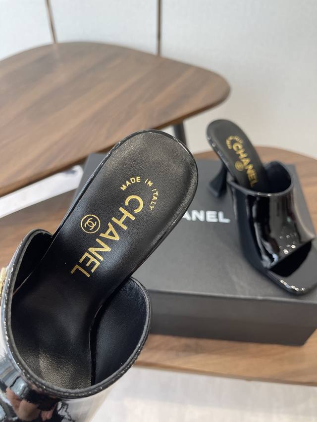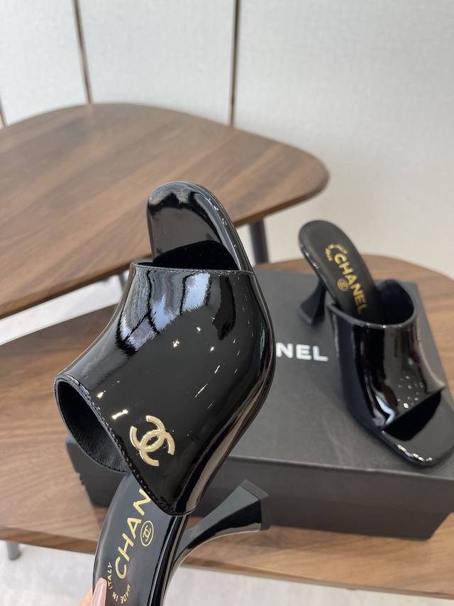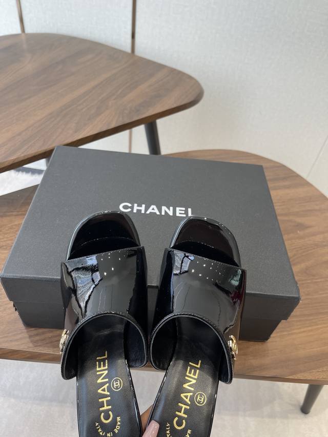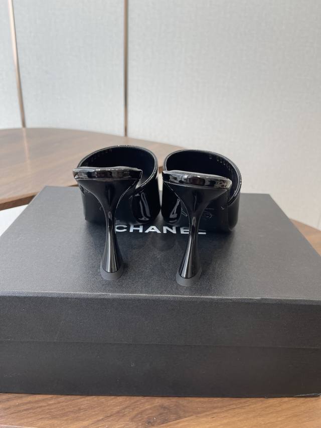 Chanel 2026早春度假系列爆品小香双C扣鱼嘴蜜儿高跟拖鞋小矮跟凉拖鞋 Ddd 简约时尚,整体采用穆勒鞋款式,这种鞋型没有鞋带或复杂的固定结构,穿脱方便,同时展现出简洁流畅的线条感,符合现代时尚审美。 Ddd 弓形的高跟设计增加了穿着者的身高和腿部线条的美感,同时也赋予了整体造型优雅、性感的气质。 Ddd 鞋面:牛漆皮 Ddd 内里垫脚:小羊皮 Ddd 鞋底:意大利真皮大底 Ddd 跟高:8.5Cm Ddd 码数:35-39 40.41定做不退换 DDD