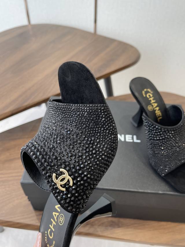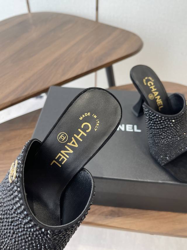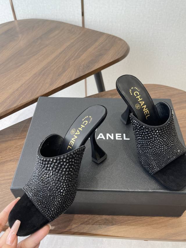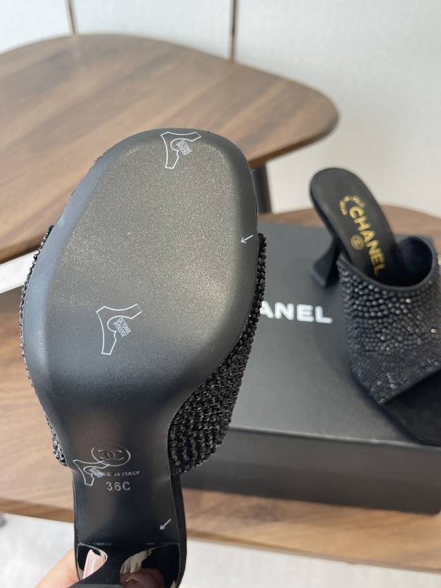 Chanel 2026早春度假系列爆品小香双C扣鱼嘴蜜儿高跟拖鞋小矮跟凉拖鞋 Ddd 简约时尚,整体采用穆勒鞋款式,这种鞋型没有鞋带或复杂的固定结构,穿脱方便,同时展现出简洁流畅的线条感,符合现代时尚审美。 Ddd 弓形的高跟设计增加了穿着者的身高和腿部线条的美感,同时也赋予了整体造型优雅、性感的气质。 Ddd 鞋面:牛漆皮 Ddd 内里垫脚:小羊皮 Ddd 鞋底:意大利真皮大底 Ddd 跟高:8.5Cm Ddd 码数:35-39 40.41定做不退换 DDD