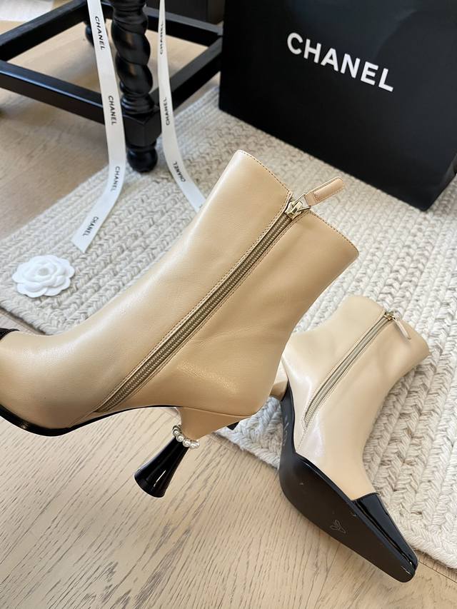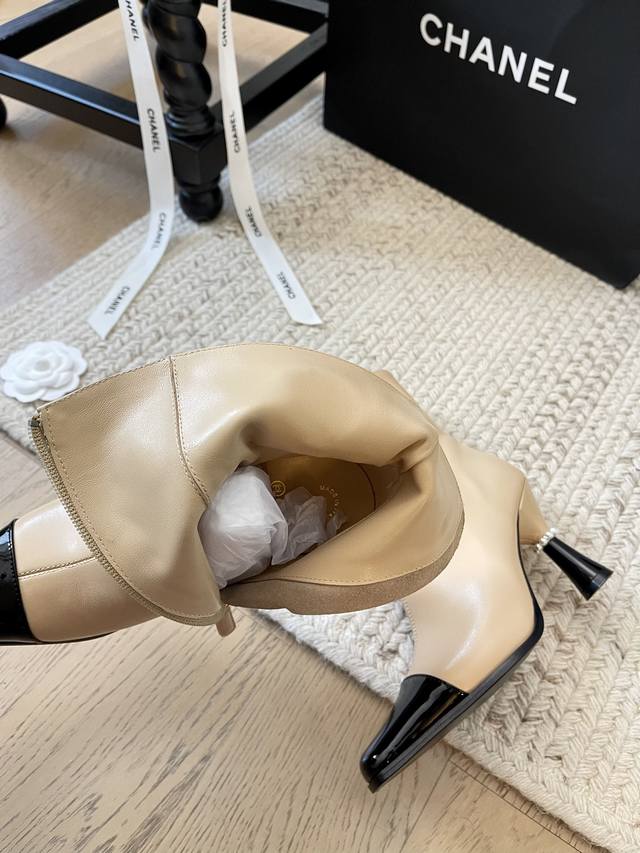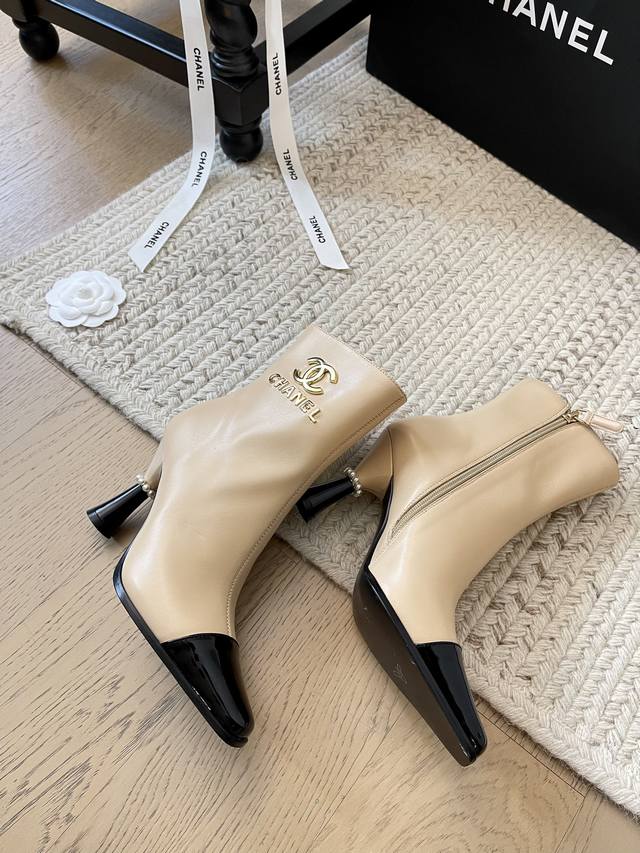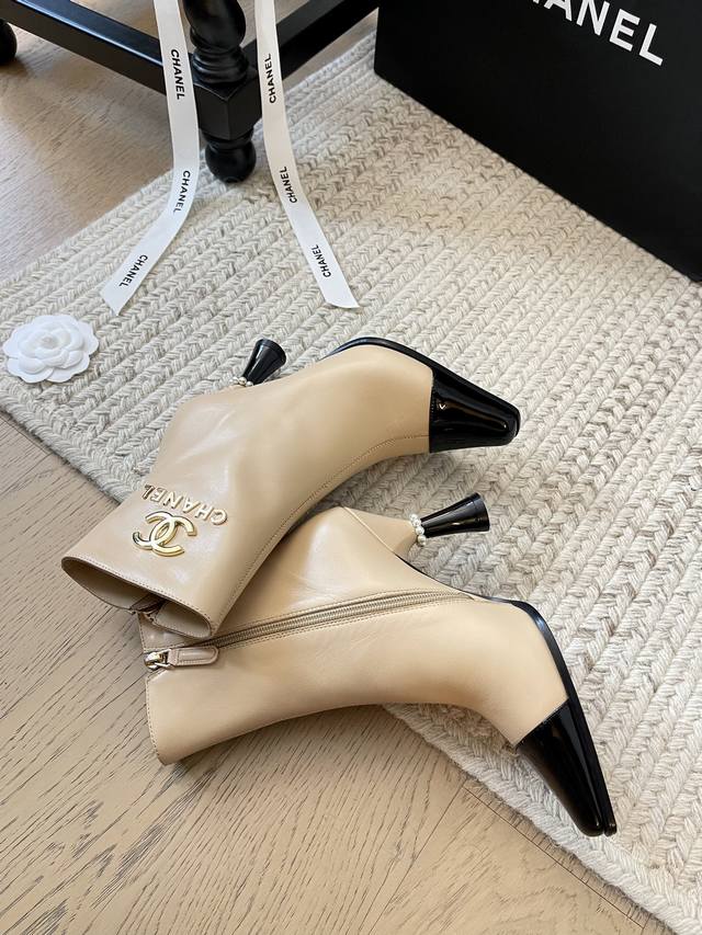 Chanel 24B新款双C短靴 顶级版本!搭配必备单品 鞋面进口小羊皮 内里羊皮 原版真皮大底 跟高6Cm 码数:35-41 定制不退换