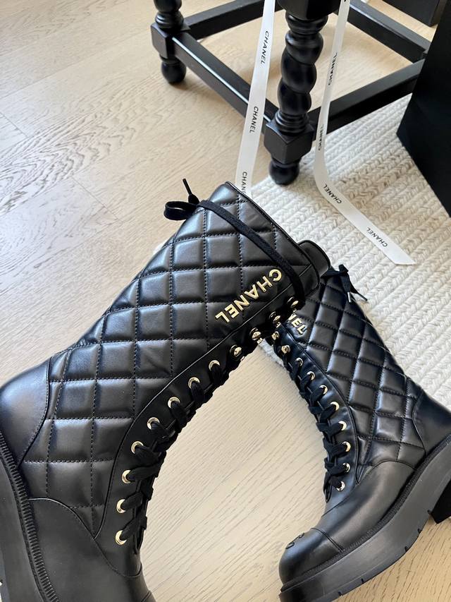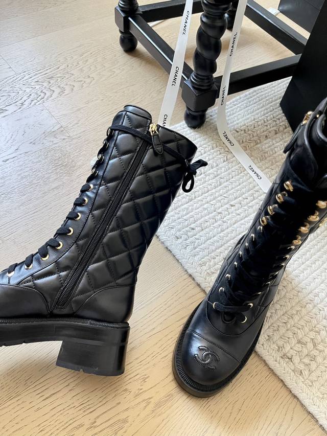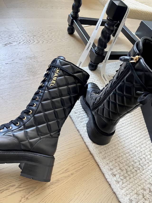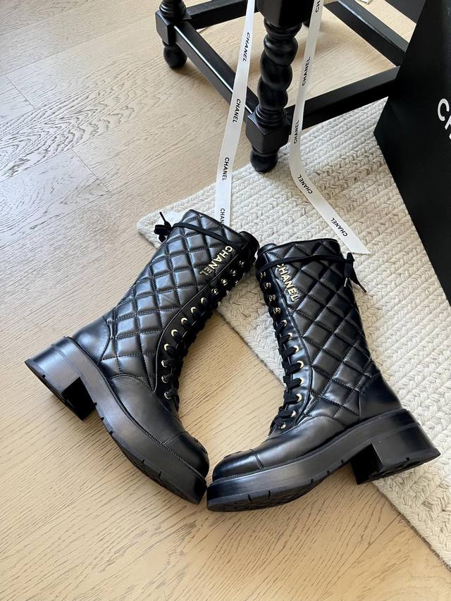 Chanel 24K新款菱格骑士中筒靴! 顶级版本!鞋柜常青款 原版电镀五金 面料原版小牛皮 内里进口小羊皮 细腻柔软 脚感非常好 原版开模防滑大底 跟高5Cm