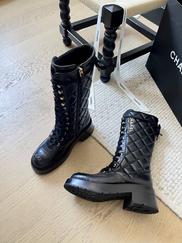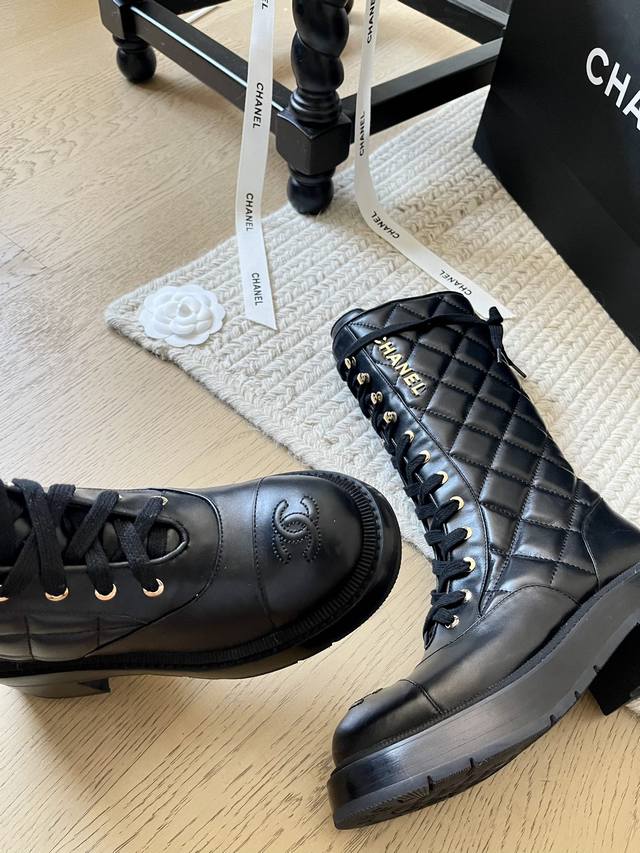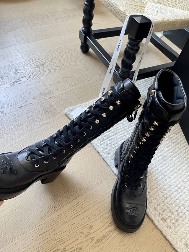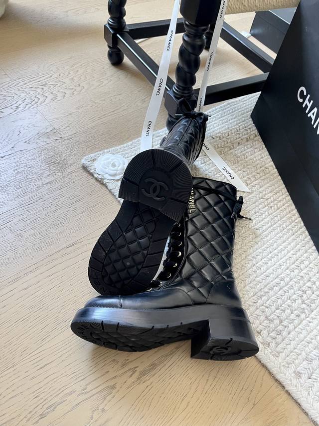 Chanel小香 秋冬羊皮长靴高靴后拉链骑士靴 版型也香家马丁靴基础版型,利落帅气...