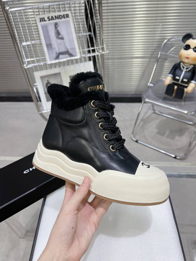 Chanel 25C 秋冬专柜新款马丁靴 天花板顶级品质 DDD 这款靴子真的是小个子福星,厚底5Cma 更精致一点 DDD 菱格,显腿瘦,关键是上脚很舒服 DDD 鞋面:进口牛皮 内里:羊毛里大底:正品开模Tpu大底~跟高5Cm DDD Size:35-40 41订做不退换 DDD