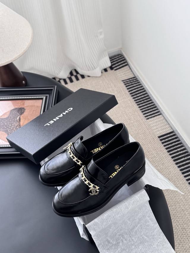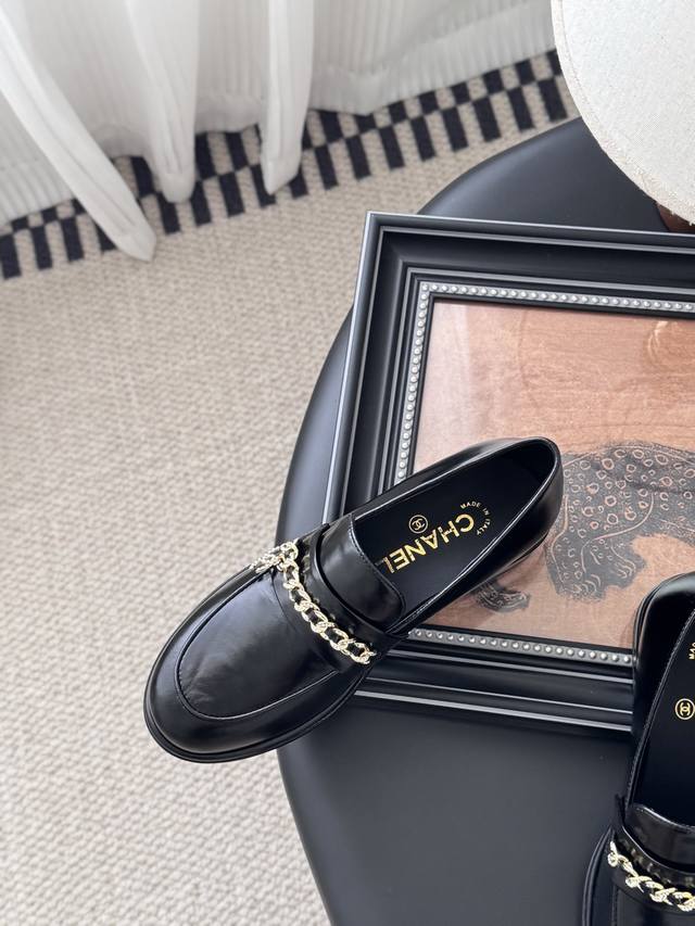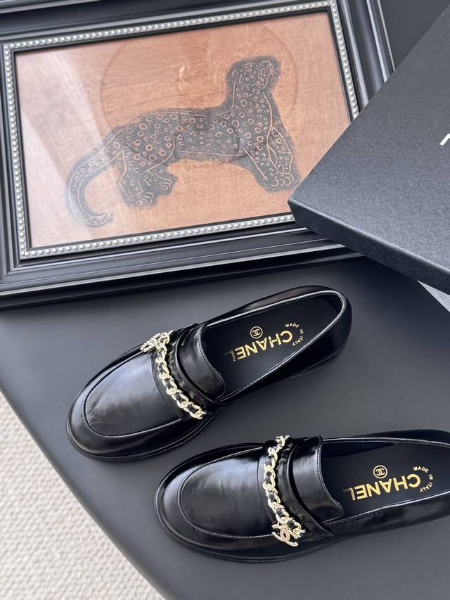 / Chanel 25K新款乐福鞋 这一季的乐福鞋很中规中矩 复古帅气还随性黑金两个颜色 都值得入 搭配完全无负担 鞋面牛皮 内里羊皮 真皮大底 Size:35-3