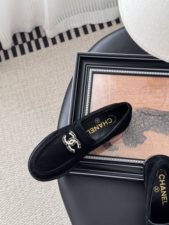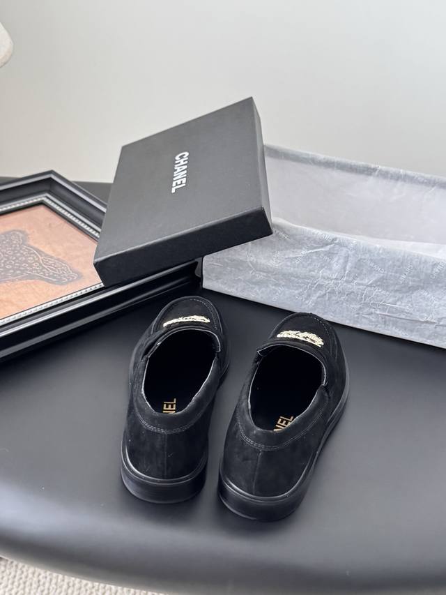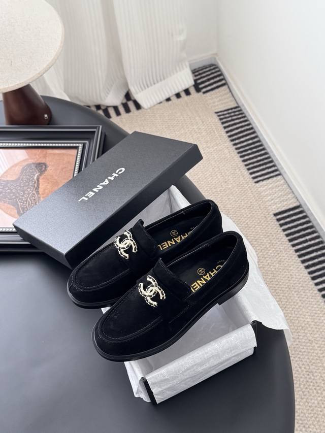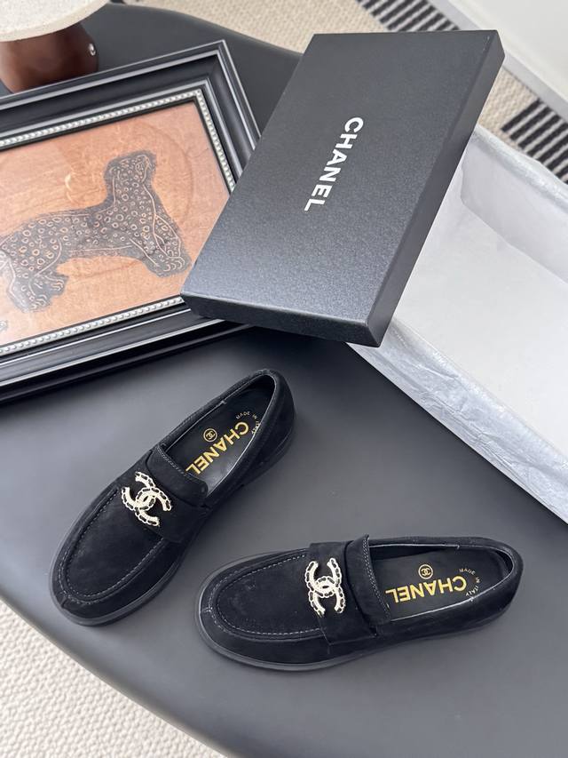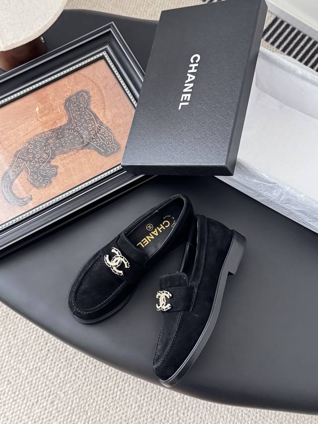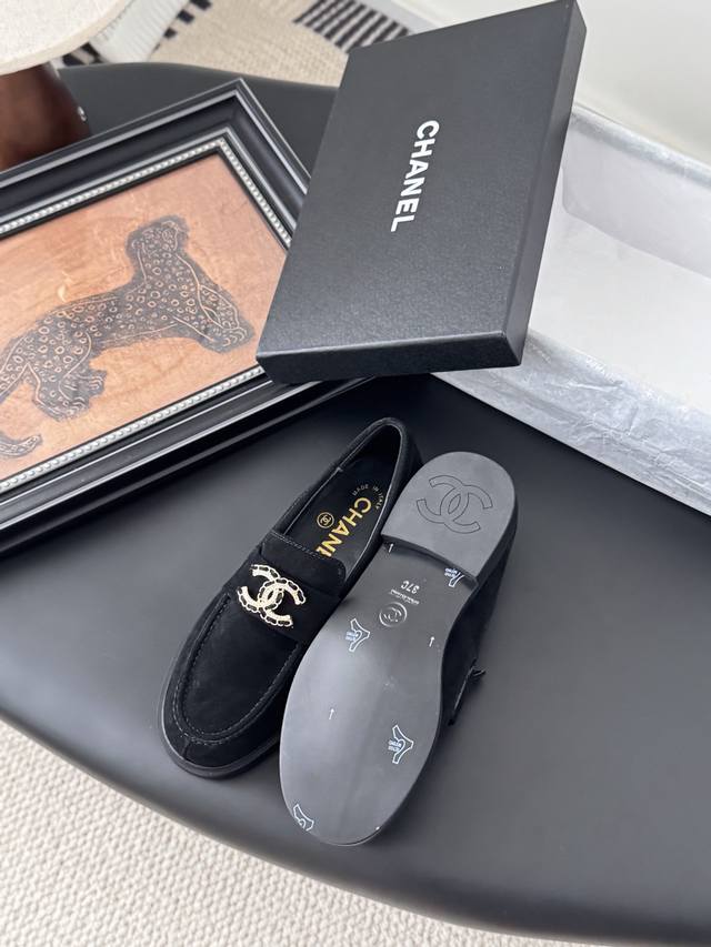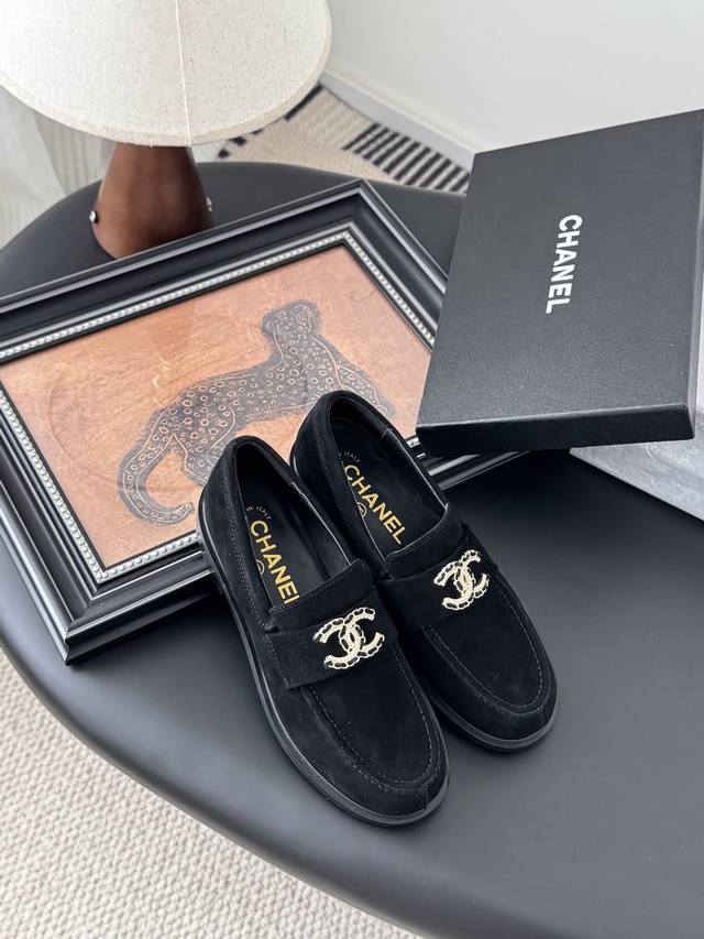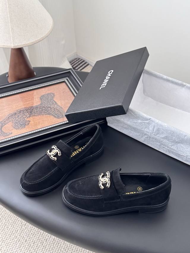 Chanel 25K新款乐福鞋 这一季的乐福鞋很中规中矩 复古帅气还随性黑金两个颜色 都值得入 搭配完全无负担 鞋面牛皮 麂皮 内里羊皮 真皮大底 Size:3