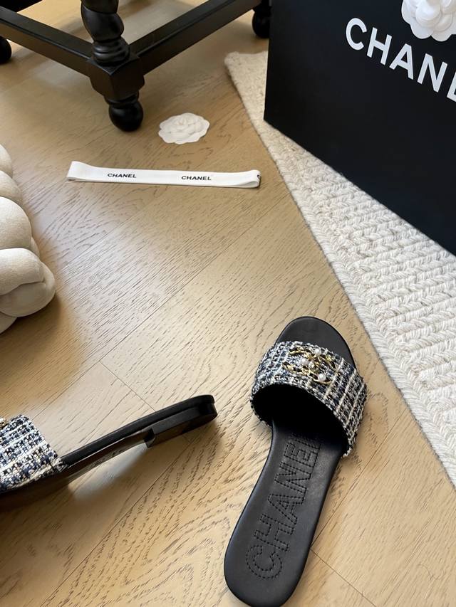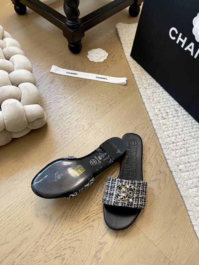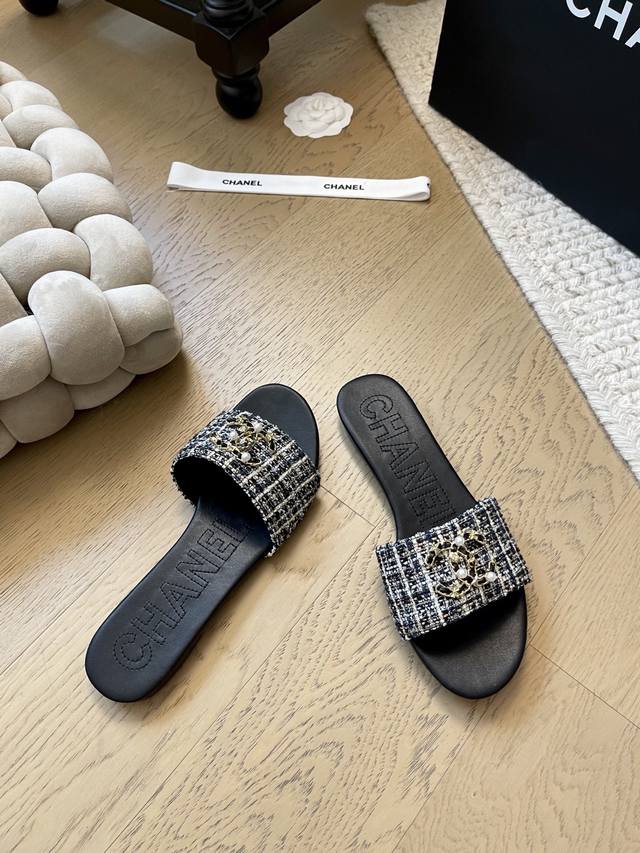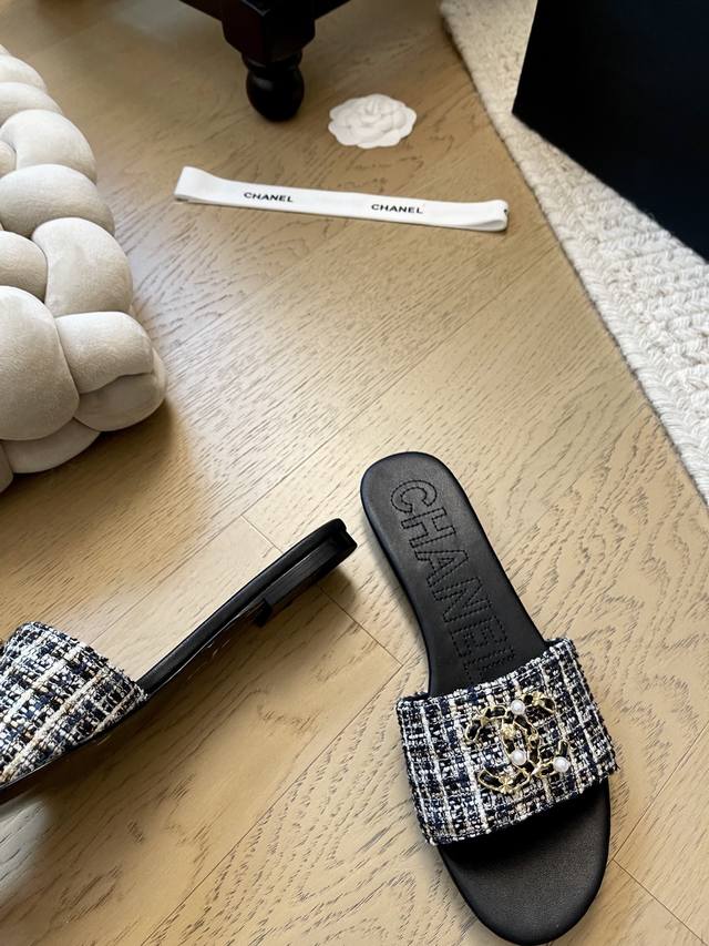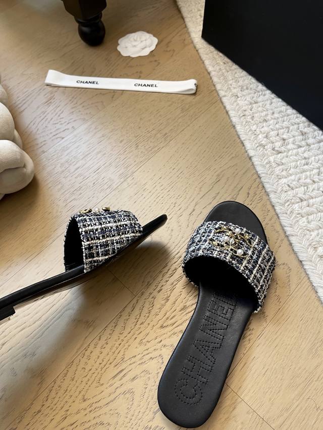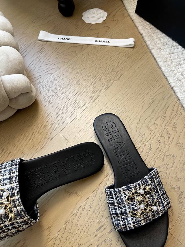 Chanel 25K新款双C珍珠拖鞋!顶级版本!抢先发售鞋面妮布 牛皮 垫脚羊皮 真皮大底!码数:34-41 34 40 41定制不退不换