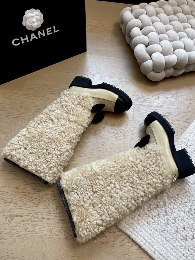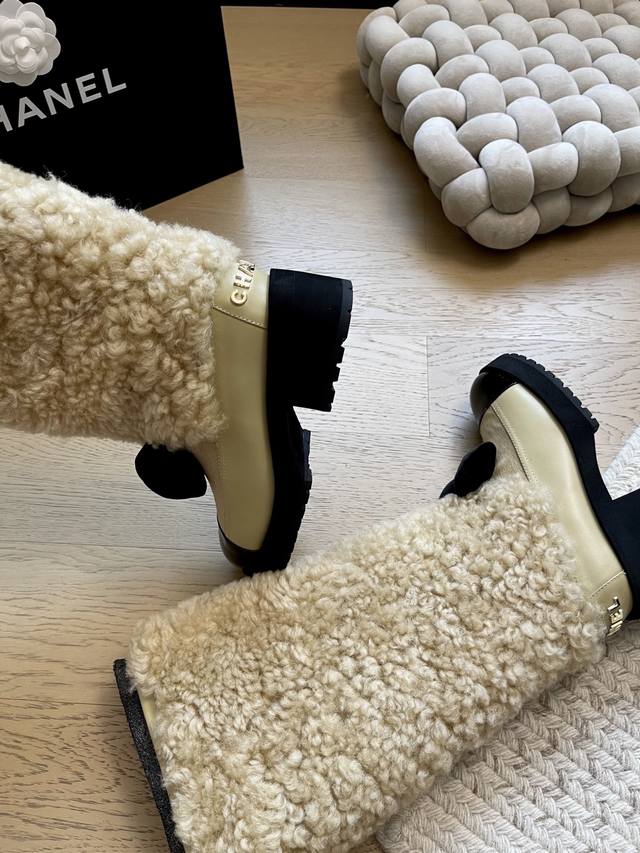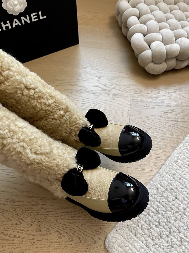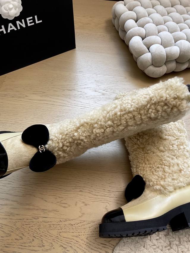 Chanel 25K秋冬新款毛绒蝴蝶靴子 毛毛靴还是很适合秋冬的~ 鞋面真羊毛 内里羊皮 原版大底 Size:35-39 其他码数定做