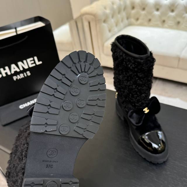 Chanel 25K秋冬新款毛茸茸靴子 毛毛靴还是很适合秋冬的~ 鞋面羊毛 内里羊皮 原版大底 Size:35-39 其他码数定做