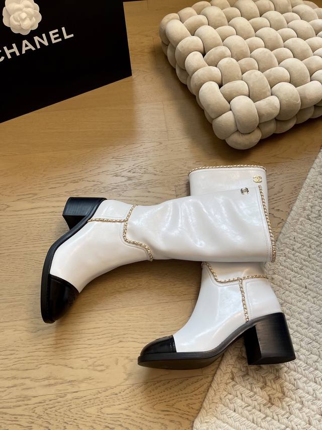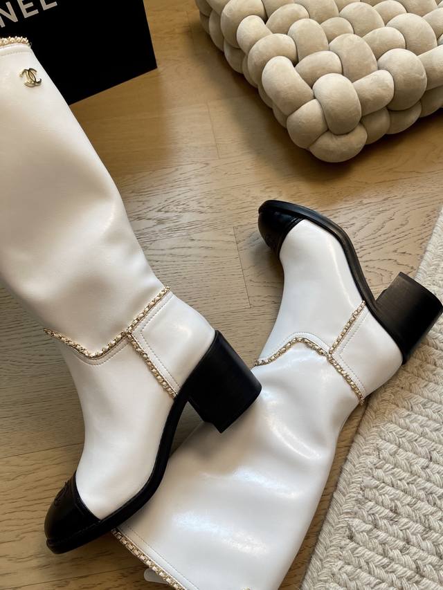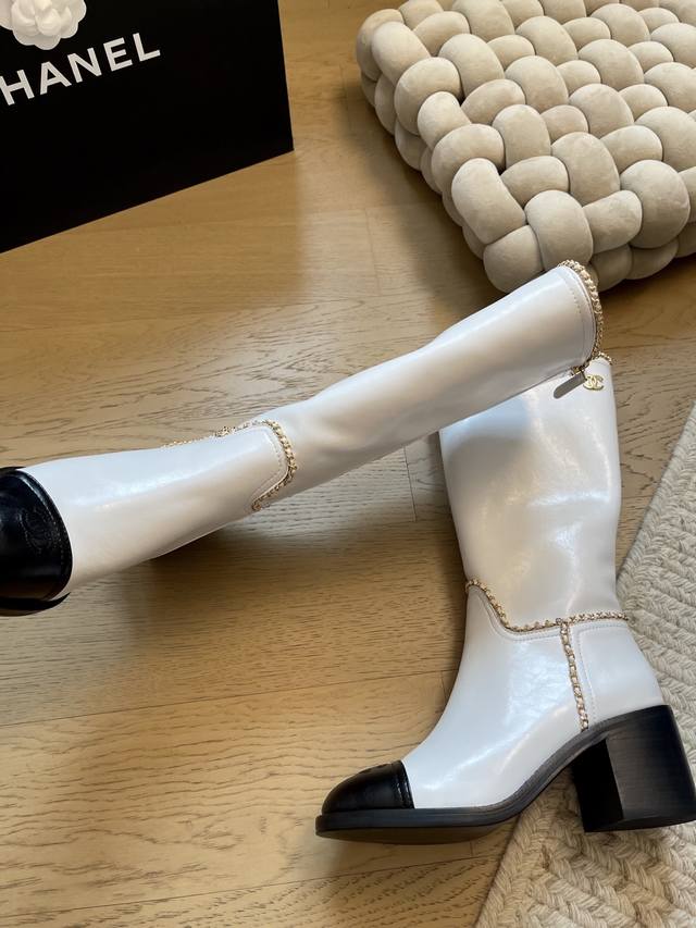 Chanel 25K经典链条粗跟长靴! 顶级版本!抢先发售 鞋面牛皮 内里羊皮 原版真皮大底! 码数:34-41 34 40 41定制不退不换