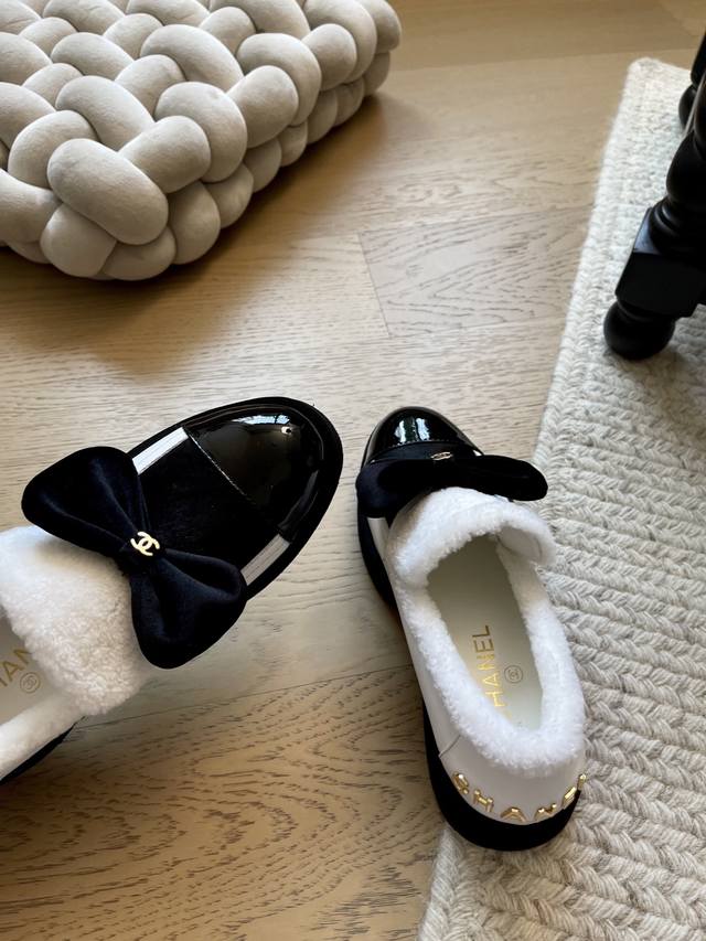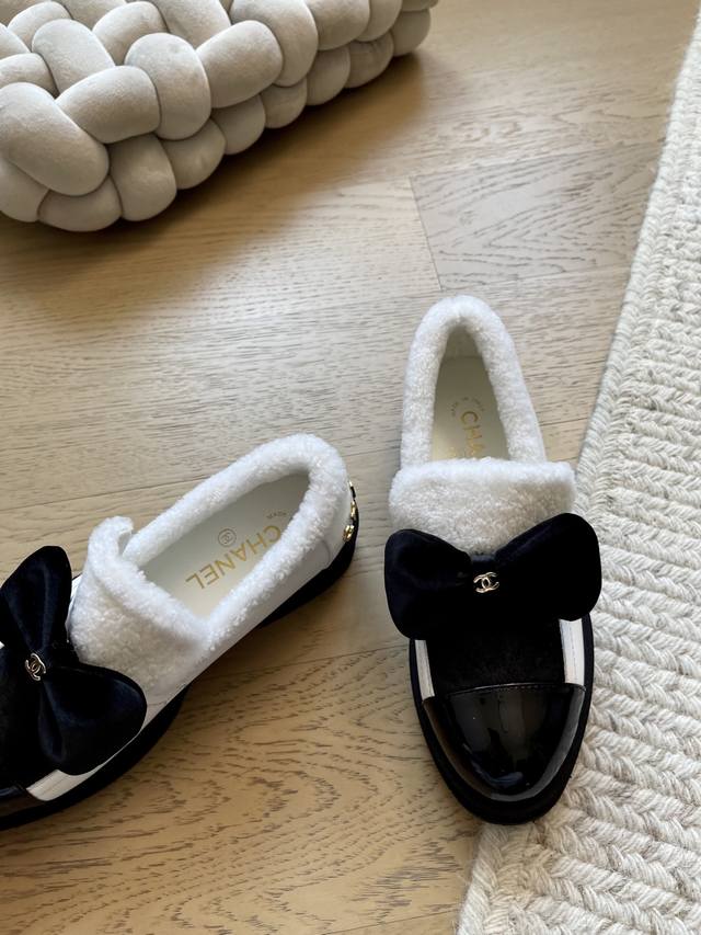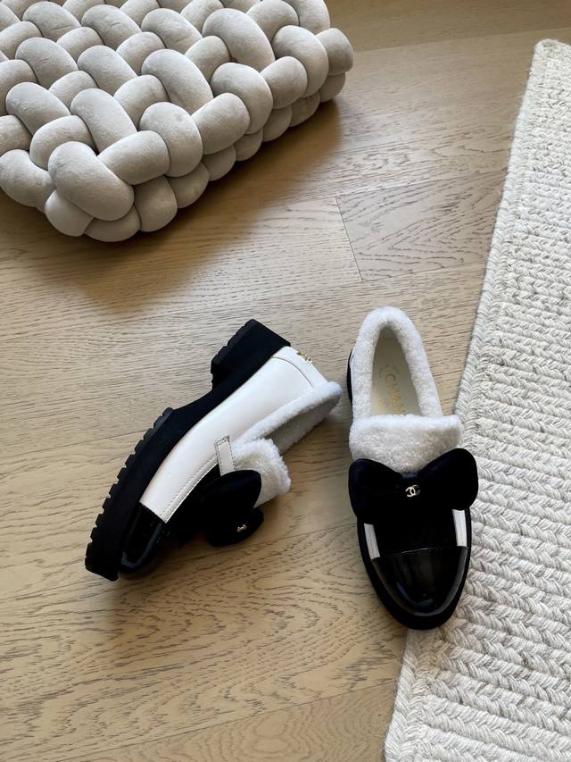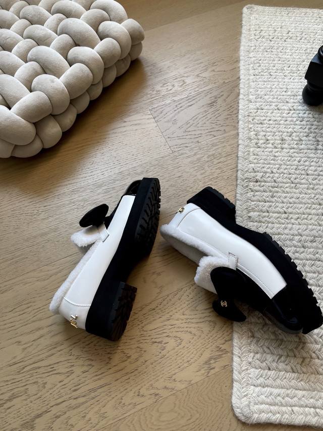 FFF Chanel 25K蝴蝶结厚底单鞋 DDD 顶级版本!抢先发售 DDD 鞋面真羊毛!内里羊皮 原版大底 DDD Size:35-39 其他码数定做 DDD