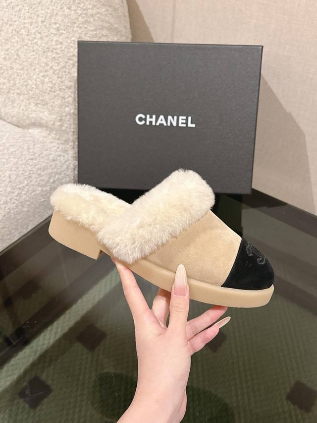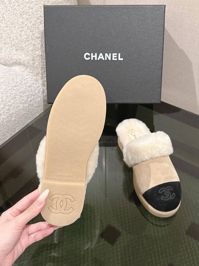 Chanel 25K 系列双C拼色毛毛雪地靴 DDD 米色麂皮+黑色拼接,经典双C标志超有辨识度。内里柔软羊毛,保暖又舒适,秋冬穿超合适!靴筒约3Cm,低筒设计,日常穿搭无压力。橡胶鞋底防滑,户外活动也不怕滑倒。兼具功能性与时尚感,是冬季必备标志性单品,搭配短裙或长裤都很出彩,轻松打造优雅休闲风 DDD Size:35-41 41 订做不退换 DDD