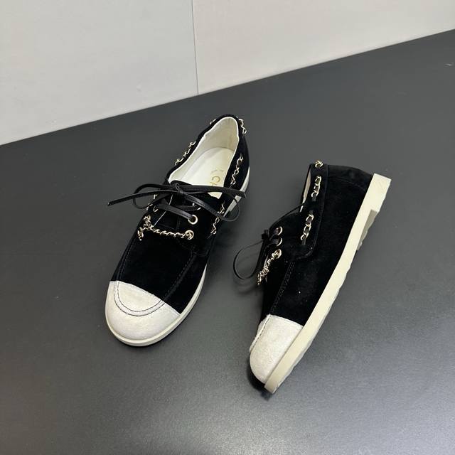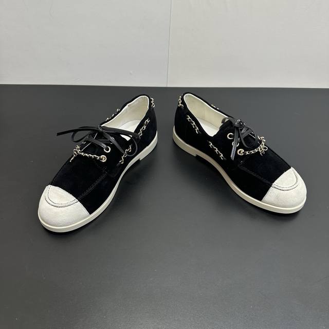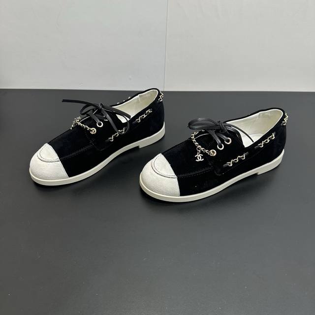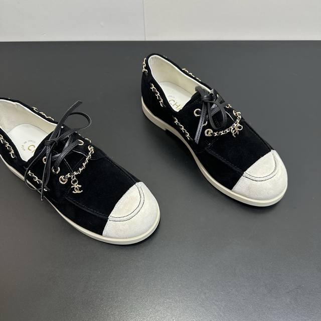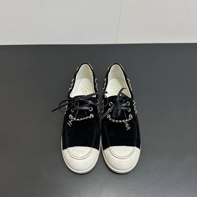 Chanel 26C新款拼接链条休闲鞋平底鞋 DDD 偏度假休闲的风格,色彩比较轻快明亮。 DDD 这一季的鞋子的的确确让我觉得惊喜,保留了小香双拼头的经典元素,运用在了不同款式的鞋子上,百搭程度和舒适度都很绝,我的心真的是被狠狠拿捏了。 DDD 鞋面麂皮 内里羊皮 原版大底 DDD Size:35-40 DDD