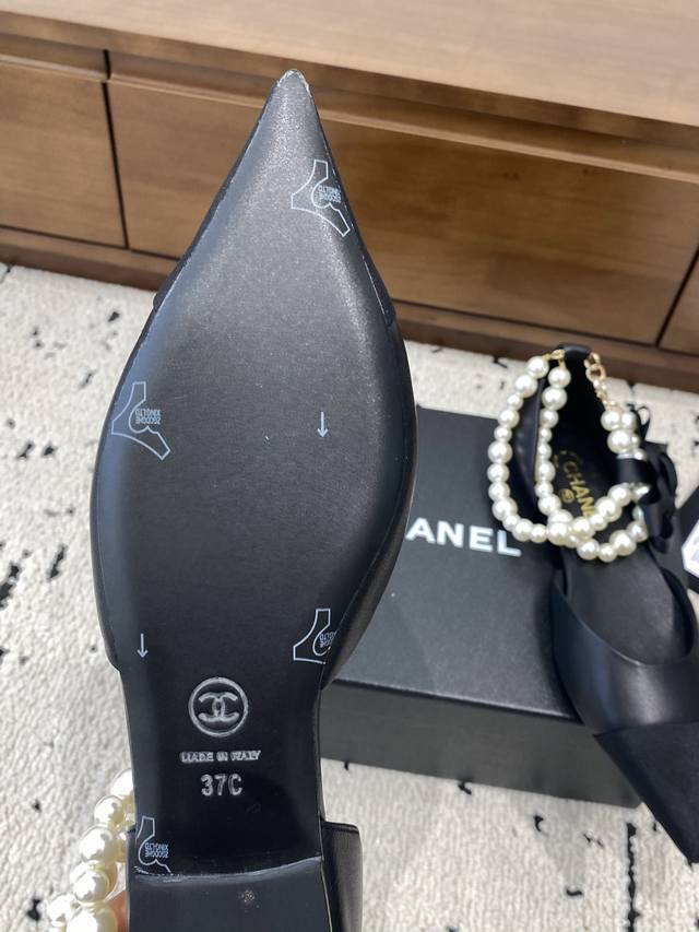 拖鞋 单鞋 -原版开发 高版本 -Chanel 香奈儿小香C家 2025 蝴蝶结尖头平底单鞋 包头拖鞋 鞋面:皱纹牛漆皮 内里:透气羊皮...