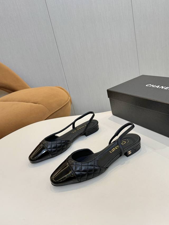 Chan*L出厂价p 经典Slingback小香凉鞋!单鞋! 就像Coco香奈儿女士说的:流行稍纵即逝,但风格永存!这双后空鞋就是香家经典中的经典!双色搭配,简