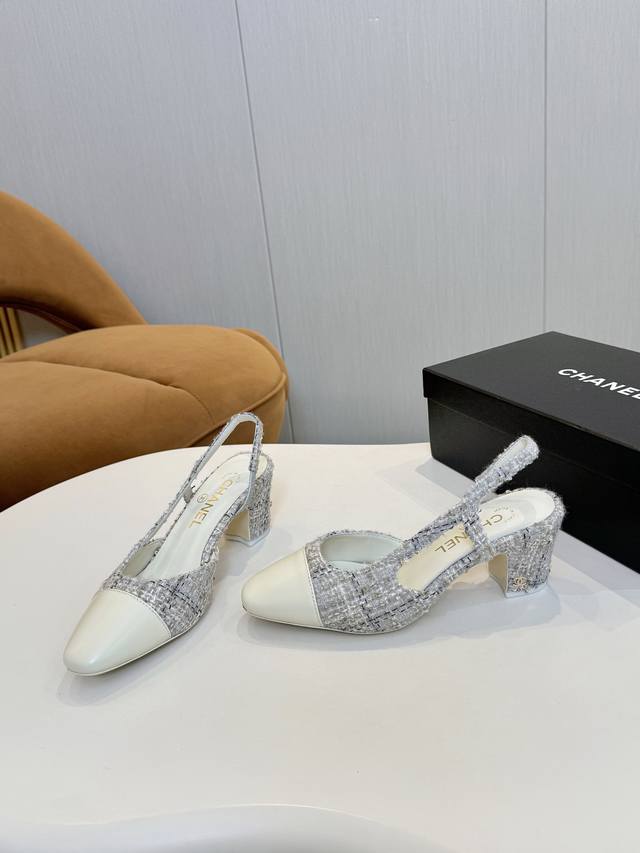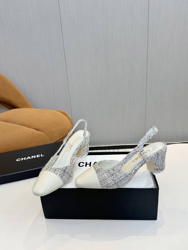 Chan*L出厂价p 经典Slingback小香凉鞋!单鞋! 就像Coco香奈儿女士说的:流行稍纵即逝,但风格永存!这双后空鞋就是香家经典中的经典!双色搭配,简