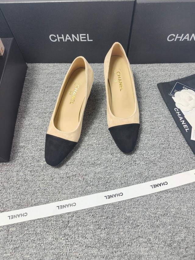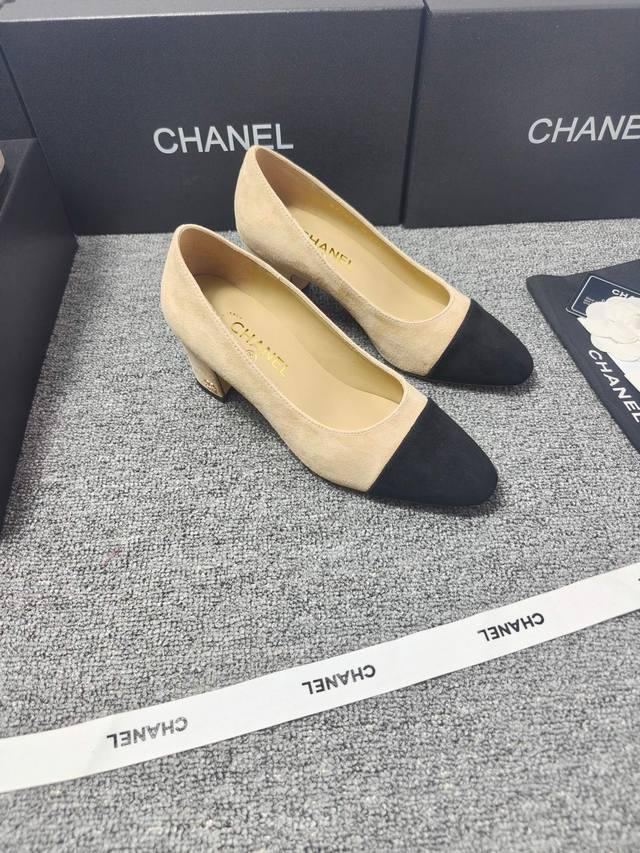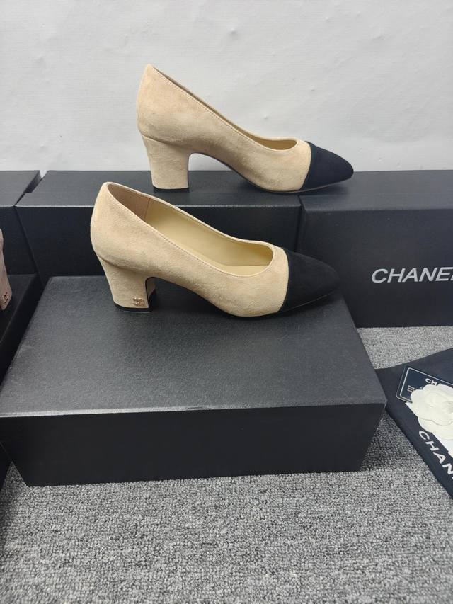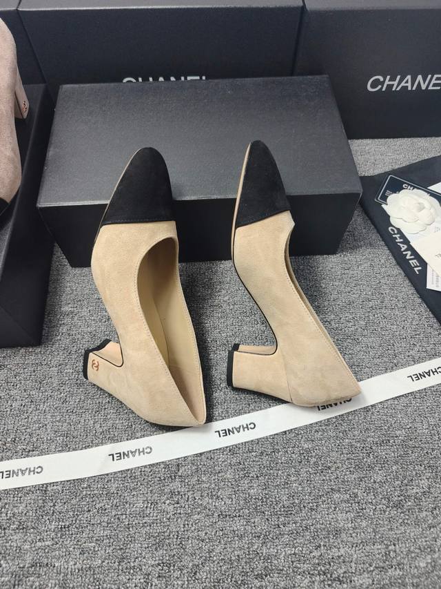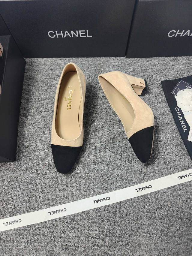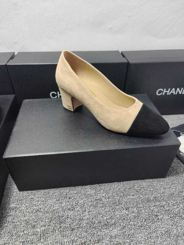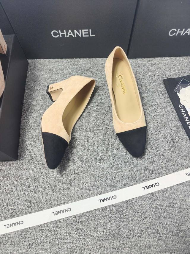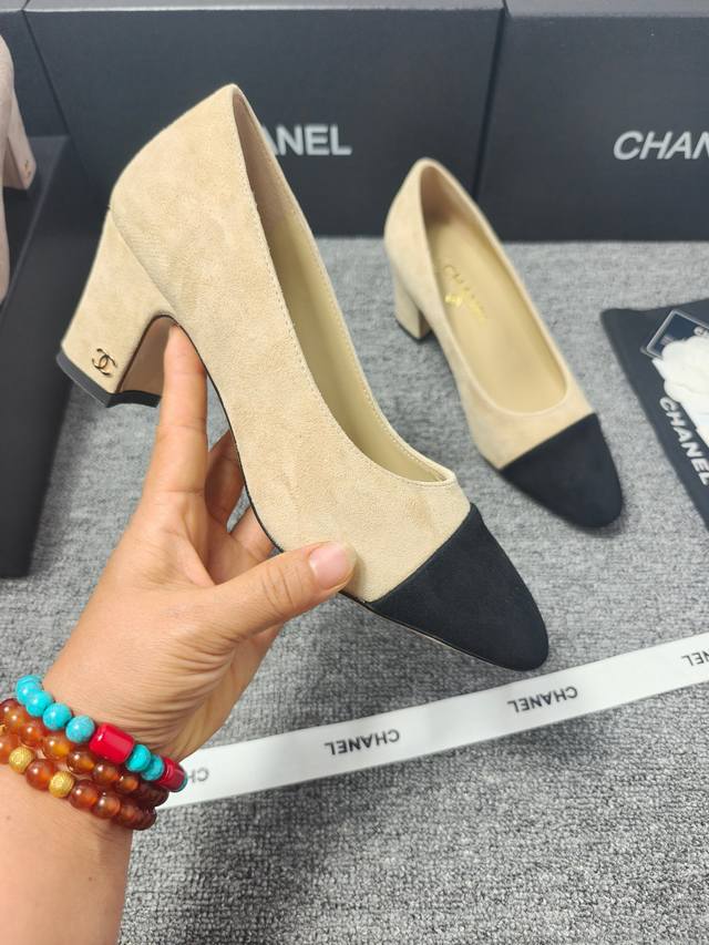 P360 Chanel 25C新款爱心扣尖头粗跟单鞋! 顶级版本!春季新品 抢先发售 鞋面麂皮 漆皮 内里羊皮 真皮大底 原版开模五金...