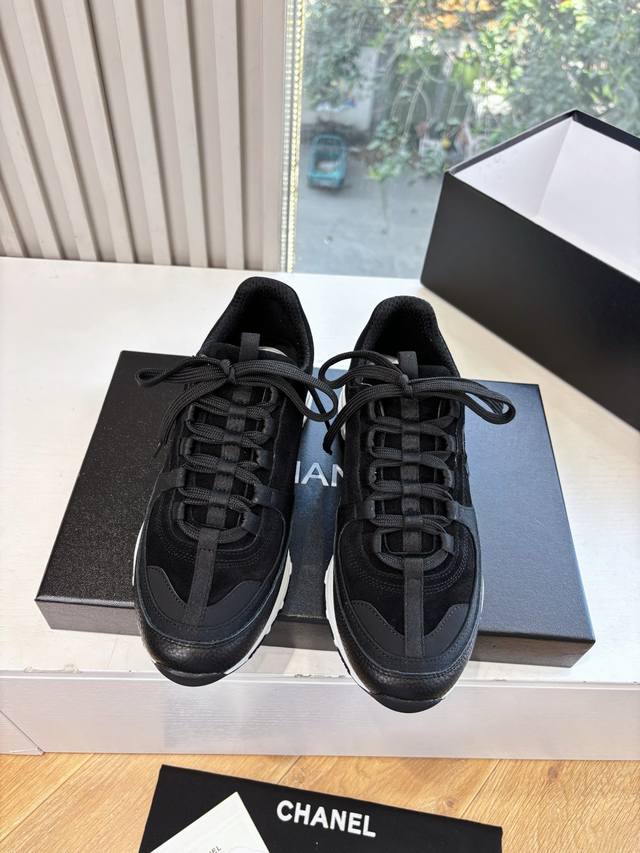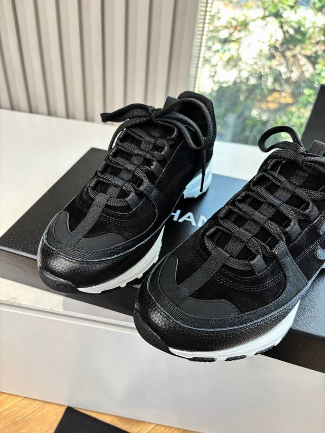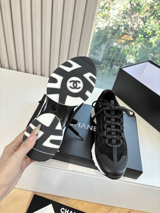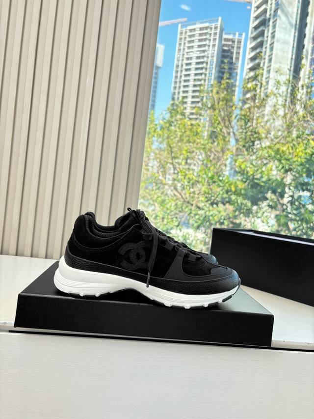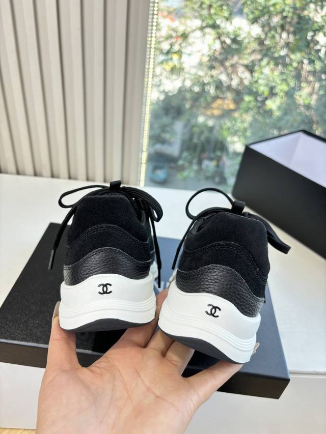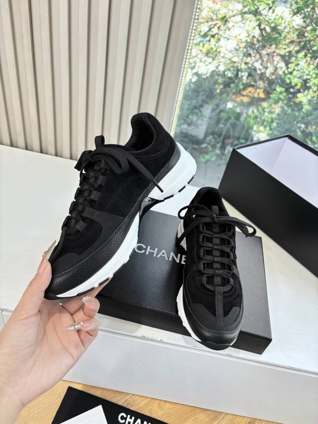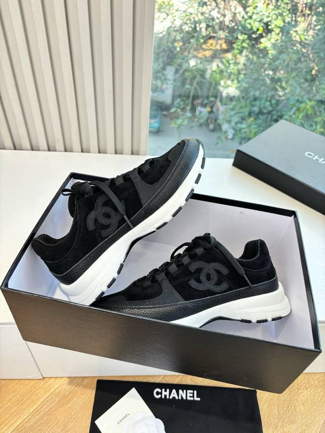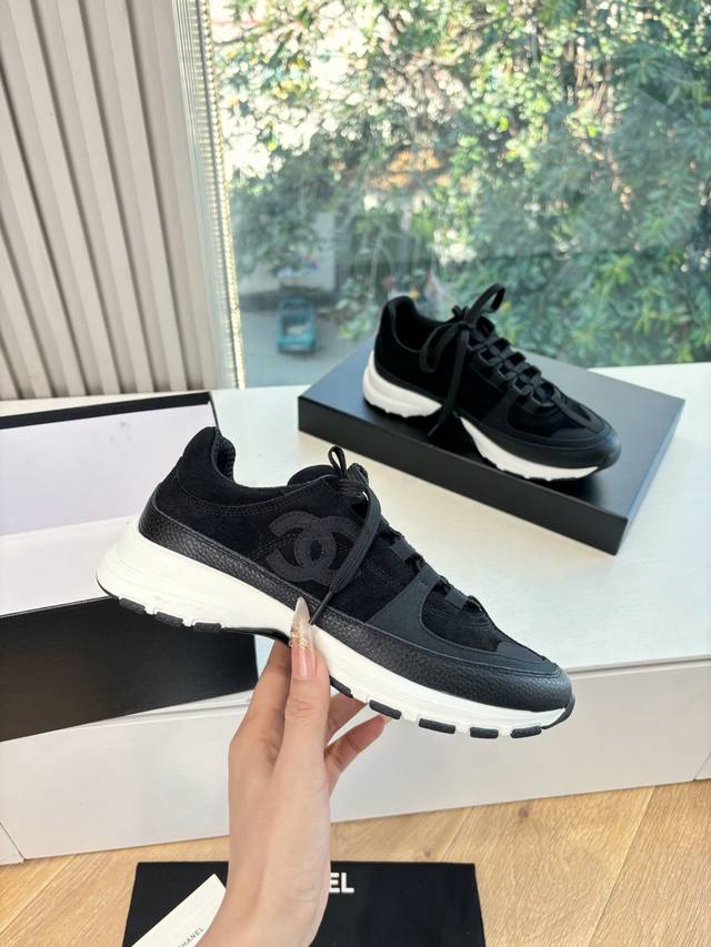 G059所见即所得Chanel 香奈儿 DDD 2025新款小香风麂皮圆头熊猫菱格厚底运动鞋时尚增高鞋休闲鞋 DDD 面料:进口磨砂牛皮 DDD 内里:元版内里 DDD 鞋底:原版开模鞋底 DDD 全套包装 :35-40 40 41定做不退换 DDD