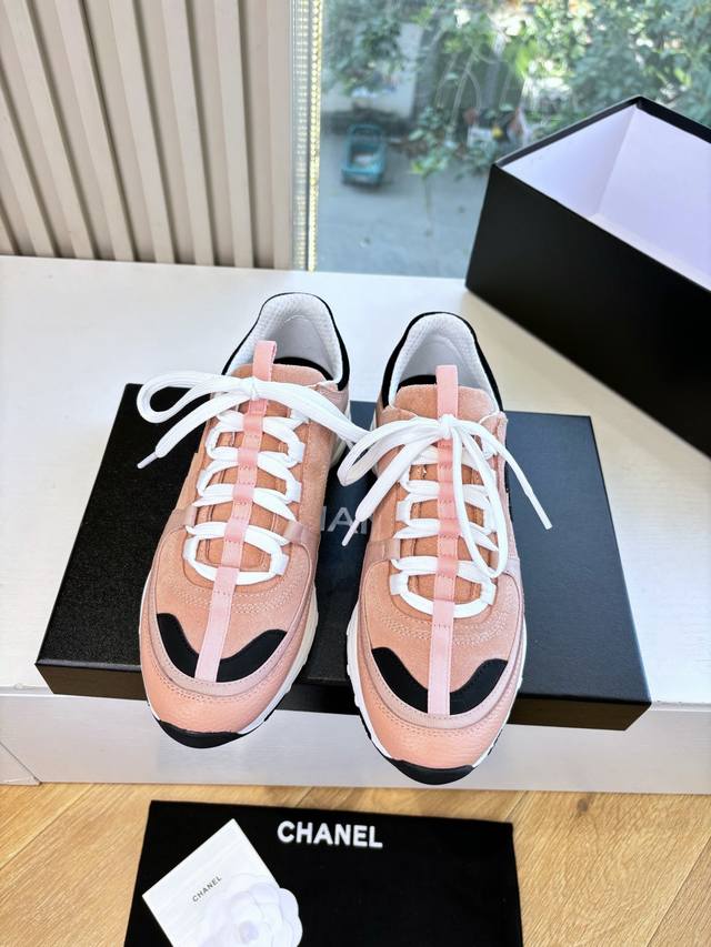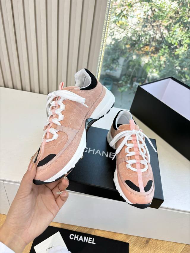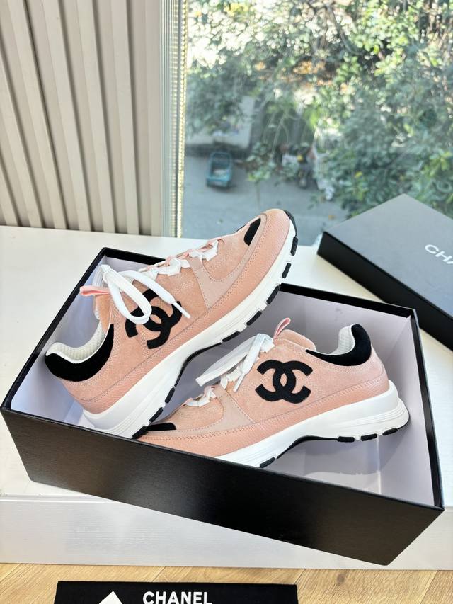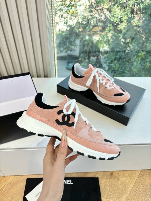 G059所见即所得Chanel 香奈儿 DDD 2025新款小香风麂皮圆头熊猫菱格厚底运动鞋时尚增高鞋休闲鞋 DDD 面料:进口磨砂牛皮 DDD 内里:元版内里 DDD 鞋底:原版开模鞋底 DDD 全套包装 :35-40 40 41定做不退换 DDD