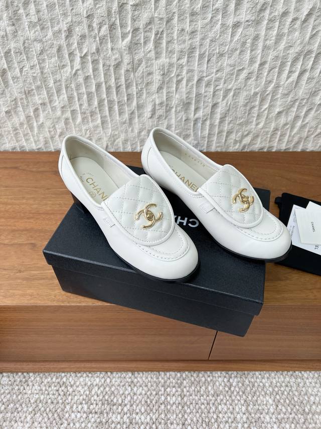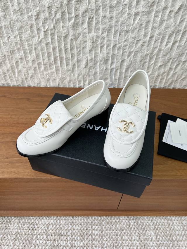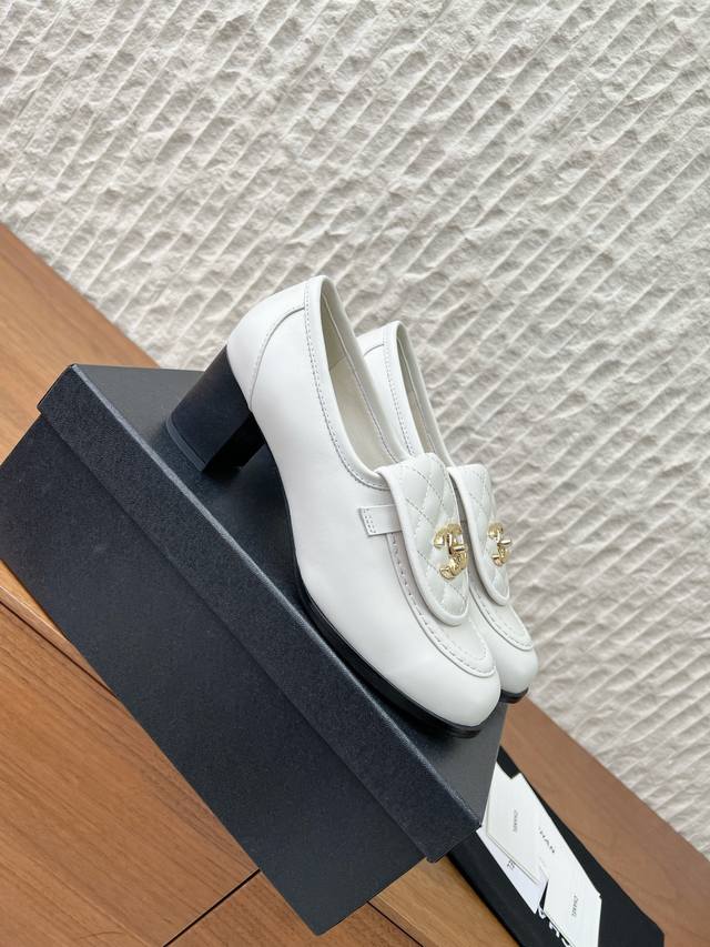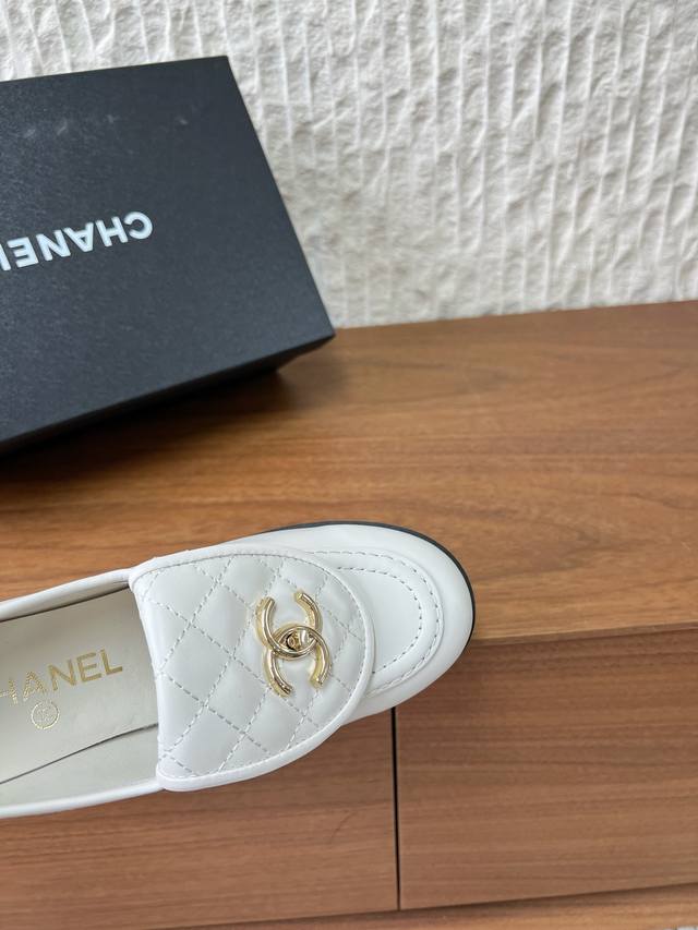 G081 Chanel 小香 25B秋冬新款 书包扣 扣 粗跟 乐福鞋 DDD 书包扣乐福鞋,优质小牛皮+经典菱格纹,搭配金属书包扣,复古又优雅。 DDD 鞋底三层真皮,手工缝制,穿着舒适耐穿。 DDD 英伦风设计,百搭牛仔裤、裙装、西装外套都Ok,通勤休闲都能驾驭! DDD 鞋型偏窄,建议选大一码更舒服~秋冬季节超火,时尚实用,是爆款单品之一。 DDD 面料:采用原版进口小牛皮 DDD 内里垫脚:羊皮 DDD 跟高:6.5Cm DDD 大底:原版定制意大利真皮大底 DDD Size:35-39 40.4