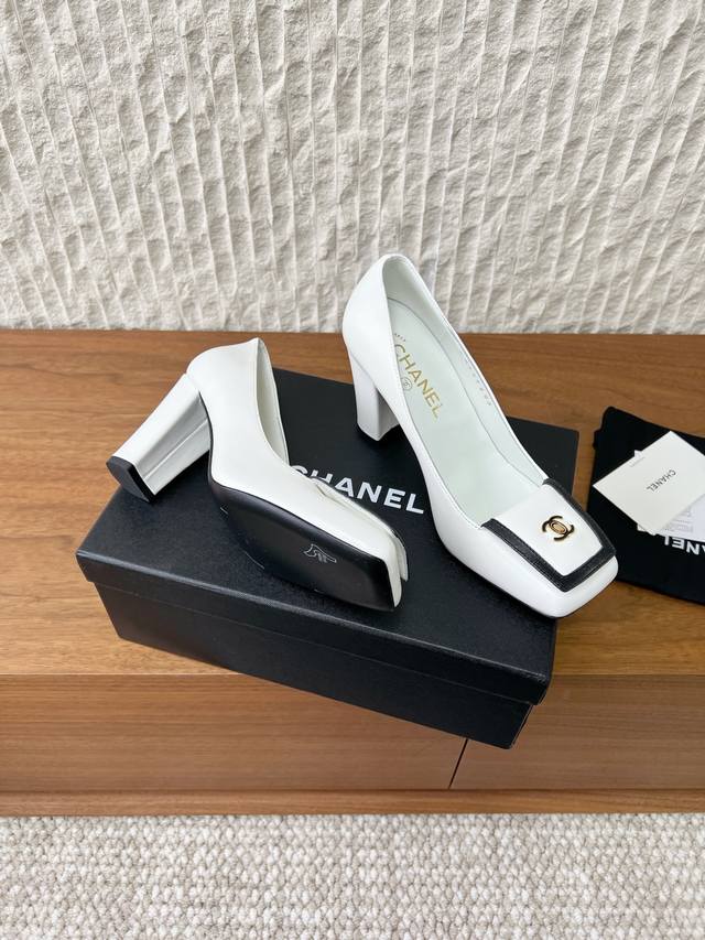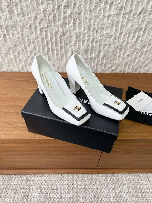 G081 Chanel 小香 25K走秀款 双C锁扣 大方头 高跟鞋 DDD 当巴黎大皇宫的秀场灯光聚焦于足尖这双走秀款大方头便以利落姿态 DDD 写下经典与创新的时尚注解 。 DDD 标志性大方头打破传统桎梏 DDD 以舒展线条勾勒摩登轮廓 DDD 将品牌110年来的高定基因融入日常步履 DDD 每一寸弧度都透着毫不费力的高级感。 DDD 金属双C标志 立体镶嵌于鞋头 DDD 随步伐流转间释放品牌辨识度 DDD 更令人惊艳的是极具未来感的鞋跟设计 DDD 多镜面反射或透明绗缝拱形结构 DDD 面料:采用