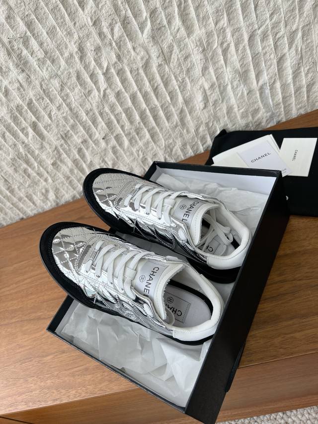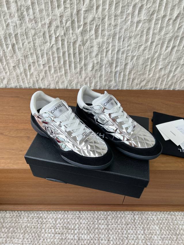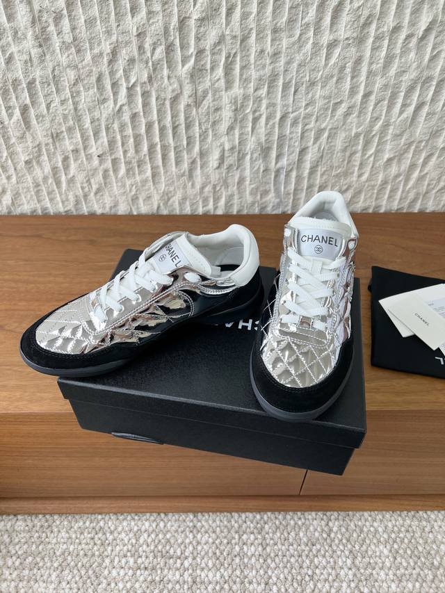 G081 Chanel 小香 25N秋冬新款 液态银 休闲鞋 德训鞋 DDD 上脚太香 这双鞋谁穿谁夸一如既往的小羊皮菱格纹,轻盈舒适,满是复古感 DDD 这双虽然是棒,但谁会真的的穿去打棒球啊啊啊 DDD 除了脚感轻且包裹感好外,棒的造型也真的有瘦腿的视觉效果啊 DDD 菱格纹羊皮搭配大鞋舌和经典,满满的复古感 DDD 鞋面:采用原版进口牛皮 牛反绒 DDD 内里垫脚:透气网 DDD 鞋底:原版定制橡胶大底 DDD 码数:35-39 40定制不退换 DDD Size:#35-40 40 订做不退换 DD