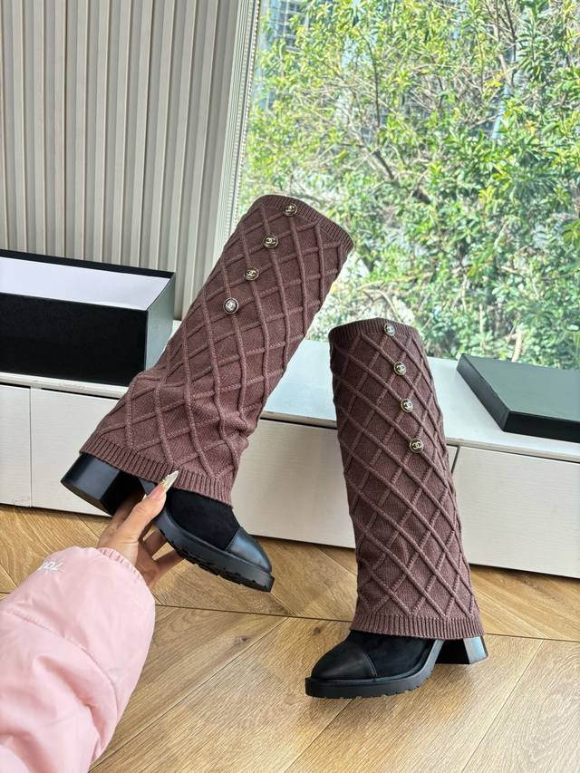G318所见即所得Chane*|小香25K秋冬新品拼色针织毛线裤管靴袜子靴 DDD 又到了时髦精们疯狂囤秋冬战靴的时候! DDD 这双靴子 绝对是你鞋柜里的“断货王”潜力股。 DDD 标志性经典拼色设计 质感满满 DDD 在这双靴子上玩转出高级层次感。 DDD 针织靴筒 拼接上纯净裤管设计 DDD 仿佛将香奈儿的优雅与干练完美融合 DDD 穿上它瞬间变身老钱风代言人。 DDD 柔软亲肤的针织材质,贴合腿部线条, DDD 舒适得就像你的第二层肌肤 DDD 逛街暴走一整天都毫无压力; DDD 独特裤管造型,自