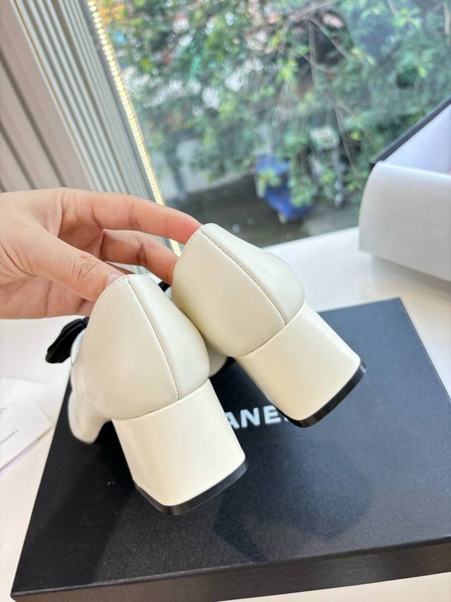 chanel 25C新款山茶花单鞋 精致的水钻扣 上脚腿长拉满 跟高平底 6 8.5Cm 鞋面羊皮 真丝 内里羊皮 原版扣 真皮大底! Size:35-40