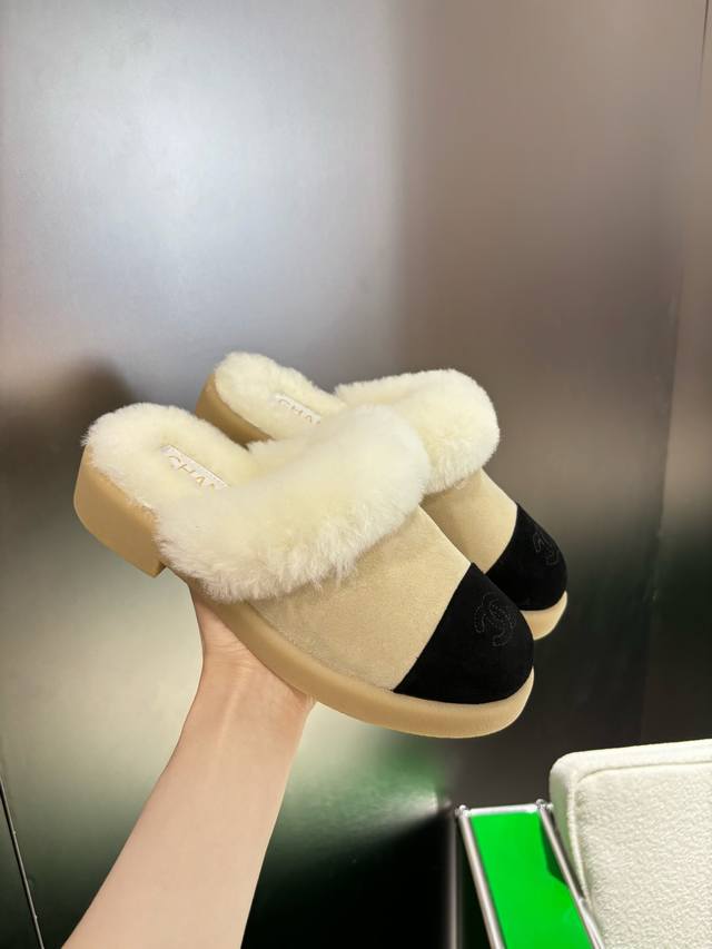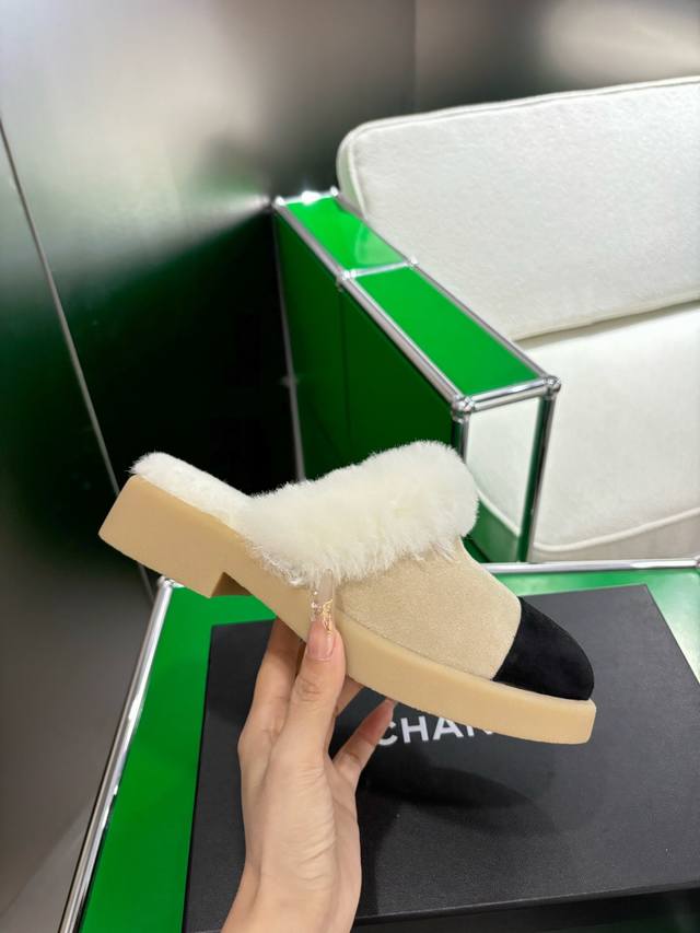 K010Chanel 小香羊毛口羊毛里拼接半拖鞋 25Fw秋冬新款,宝藏时髦单品,超级火的一款,上脚真心美,超有小香的调调,高级感十足!简约又难以抗拒,搭配展现