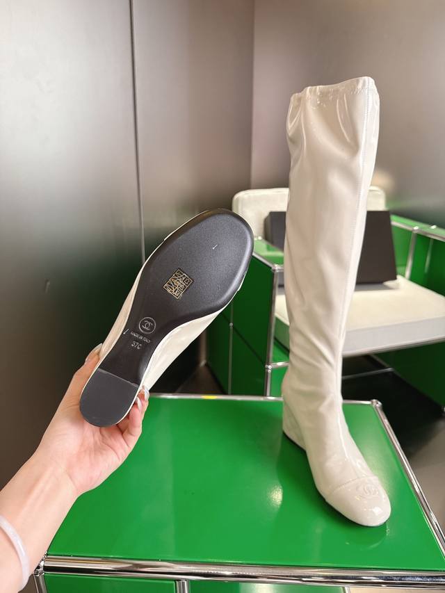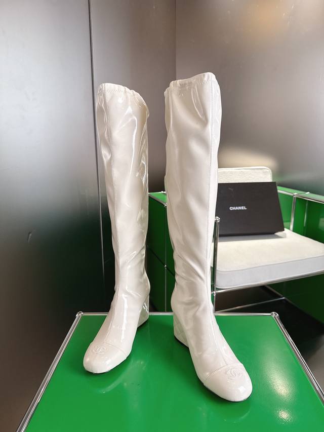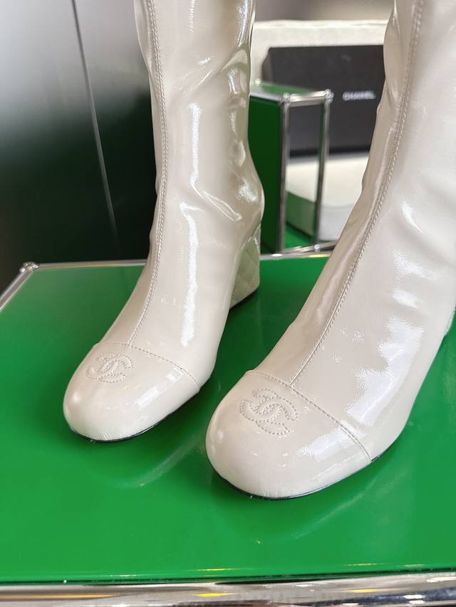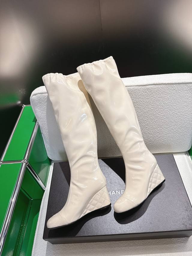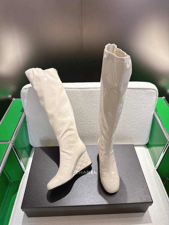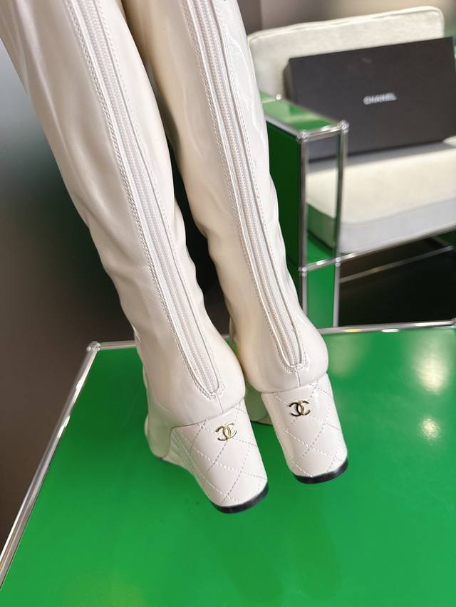 K044 Chanel 小香25Ss新款坡跟长靴 复古线条 配色设计全在线!暴走一天脚感超舒适,运动风混搭风随便玩,买完想天天穿它出门溜达烫。 鞋面牛皮 内里羊皮 真皮大底 7Cm Size:35-40