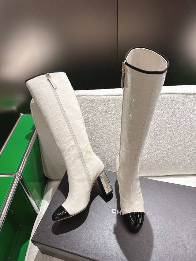 / K044L 香奈儿2025新款秋冬高跟长靴 精致电渡字母跟靴口开模点钻小标15高靴 面;进口石头纹小牛油 内里;丝绸羊皮 垫脚;丝绸羊皮 大底;意大利真皮 跟高