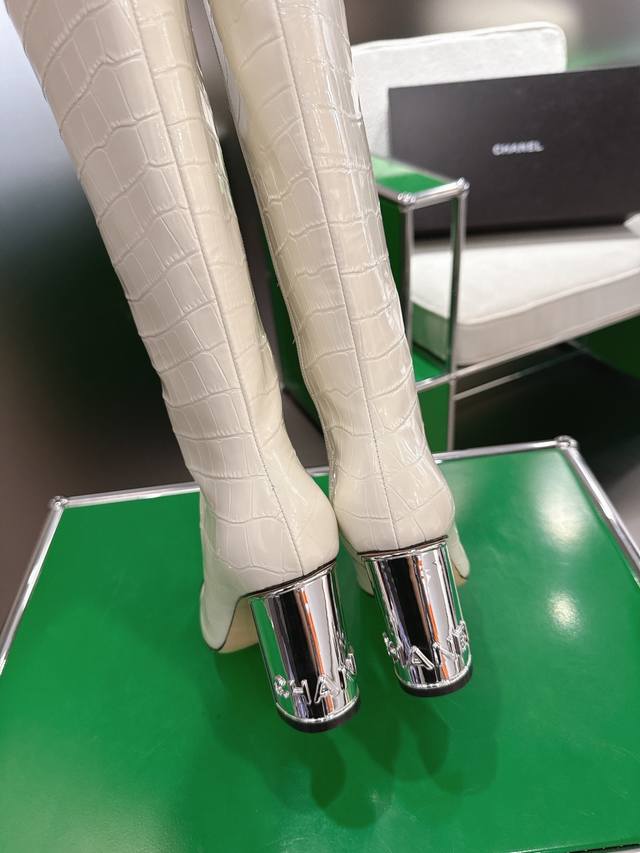 K044L 香奈儿2025新款秋冬高跟长靴 精致电渡字母跟靴口开模点钻小标15高靴 面;进口石头纹小牛油 内里;丝绸羊皮 垫脚;丝绸羊皮 大底;意大利真皮 跟高
