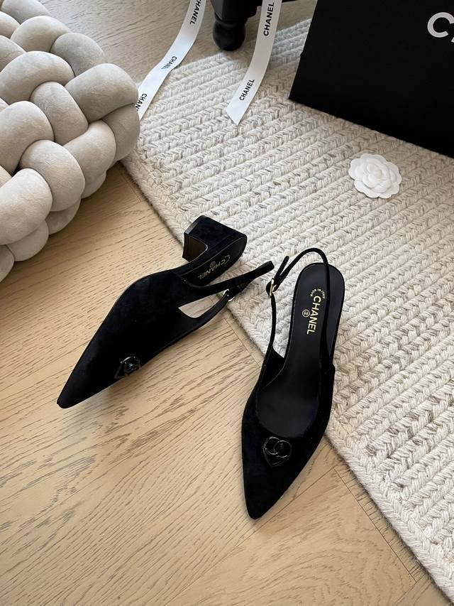 / P360 Chanel 25C新款爱心扣尖头粗跟单鞋! 顶级版本!春季新品 抢先发售 鞋面麂皮 漆皮 内里羊皮 真皮大底 原版开模五金 码数:34-41 定制不