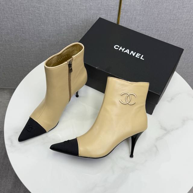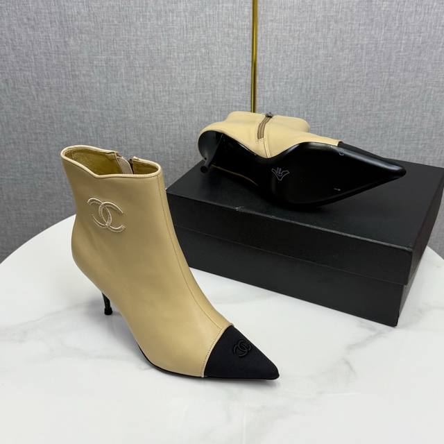 / Size:35-39 其他码数定做 DDD Chanel 25B新款尖头双C刺绣短靴 DDD 超帅的鞋型 DDD 鞋面牛皮 内里羊皮 真皮大底 DDD 跟高8C