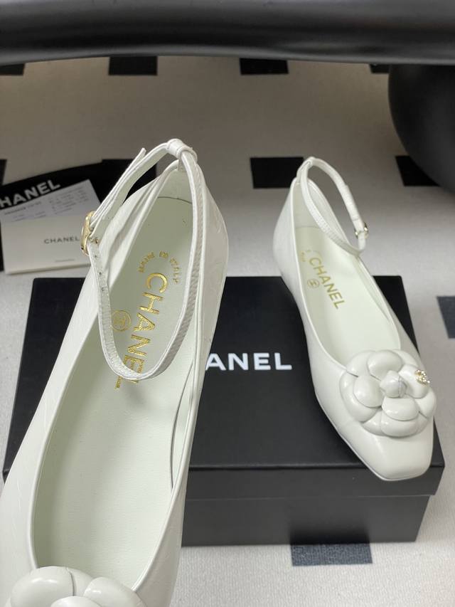 出厂价p DDD 早春新款Chanel 26B 小香山茶花玛丽珍平底单鞋 DDD 香奈儿山茶花玛丽珍:甜酷女孩的专属宝藏 DDD 它巧妙地将甜美的山茶花元素与酷帅的玛丽珍风格完美融合,碰撞出别具一格的时尚火花。山茶花的温柔婉约,为鞋子增添了一抹浪漫柔情;而玛丽珍鞋型的复古坚韧,又赋予其一份率性不羁。 DDD 鞋面:牛皮 DDD 内里垫脚:羊皮 DDD 鞋底:意大利真皮大底 DDD 码数:35-39 40定做不退换 DDD
