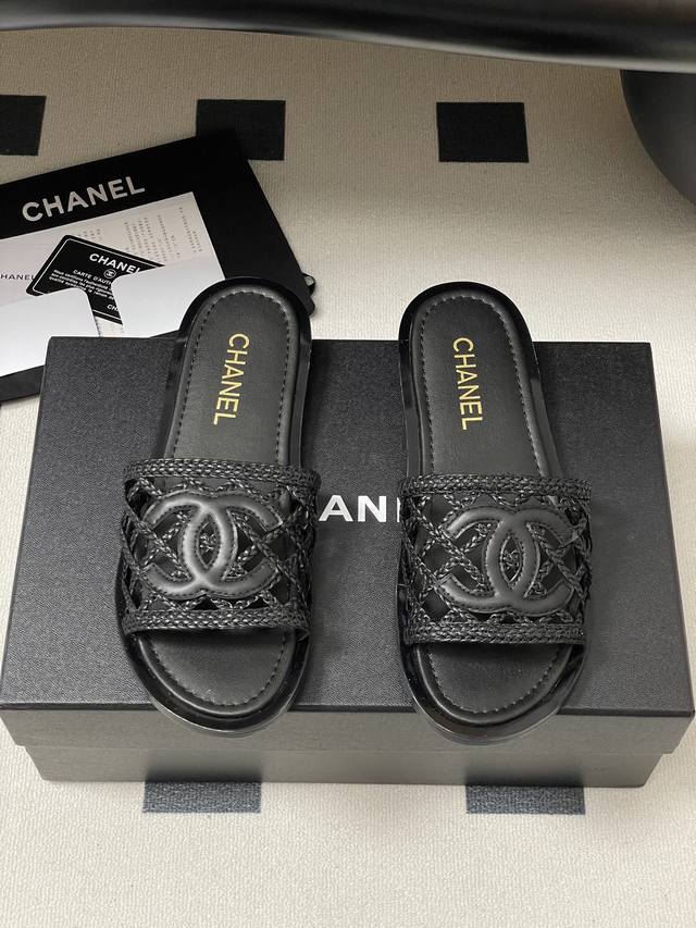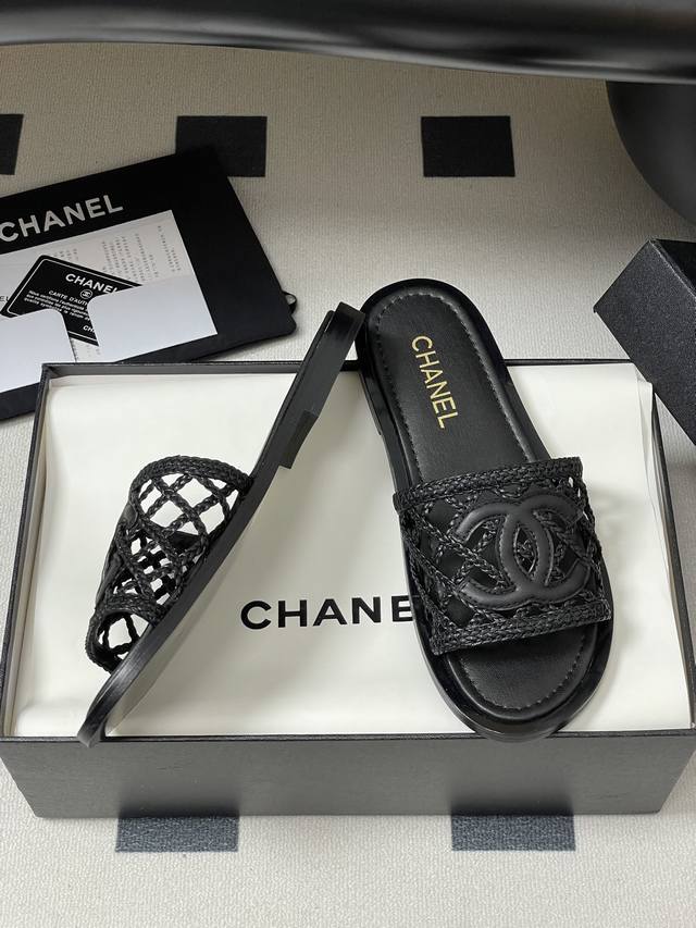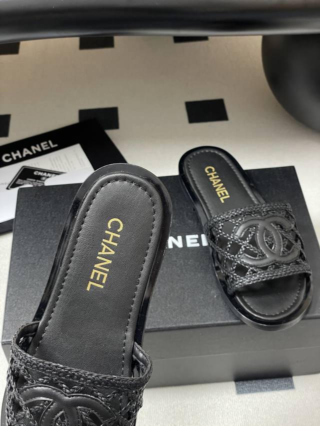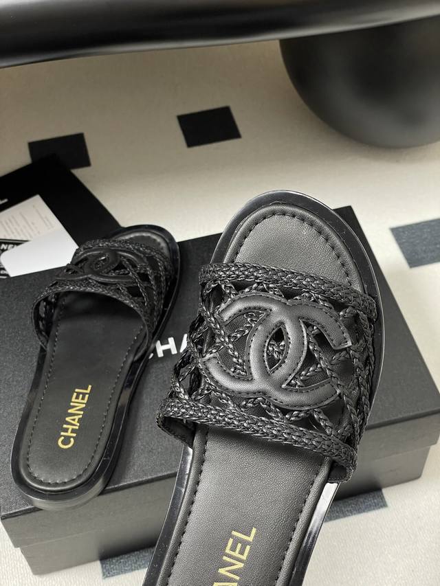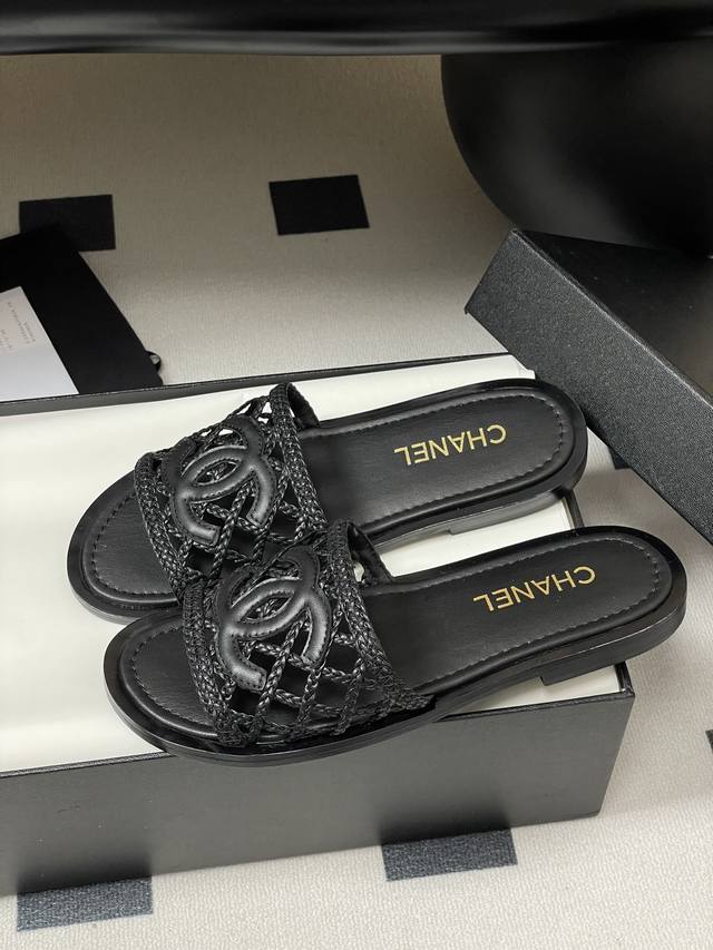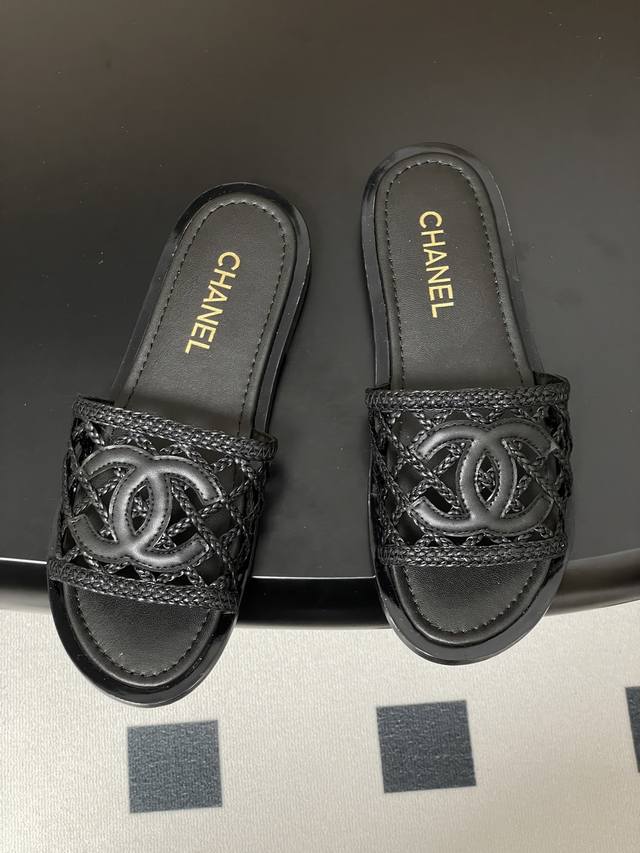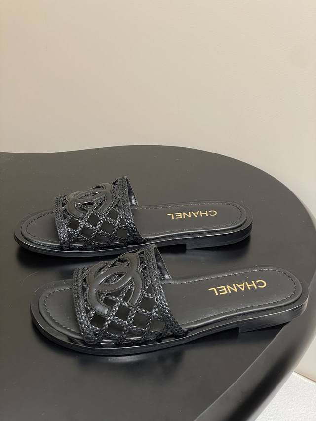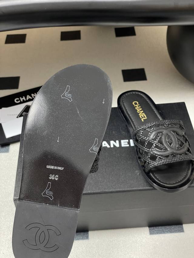 出厂价p DDD 26p夏季新款Chanel 小香经典双C一字拖鞋编织镂空平底凉拖鞋 DDD 尽显奢华格调。鞋面饰以标志性双 C 元素,搭配精致格纹编织,轻盈又优雅,细节之处满是品牌辨识度。简约的平底设计,贴合脚型,带来舒适穿着体验。无论是搭配休闲的、裙装,还是简约的,都能轻松提升时尚感,彰显穿着者的精致品味与优雅气质,是时尚人士打造精致造型的绝佳单品 DDD 鞋面:皮革手工编织 DDD 内里垫脚:羊皮 DDD 鞋底:意大利真皮大底 DDD 码数:35-39 40.41定做不退换 DDD