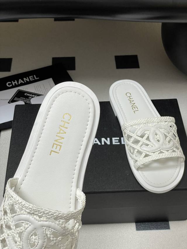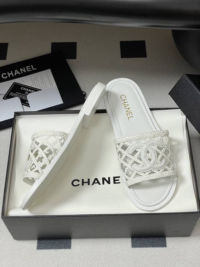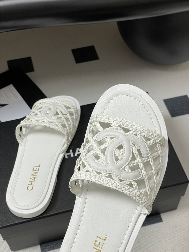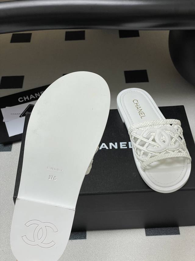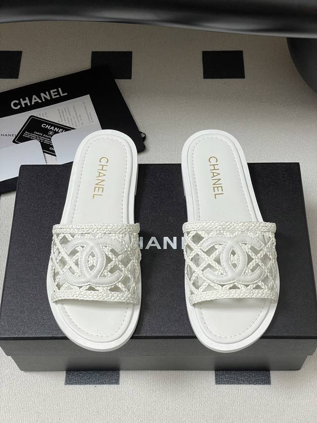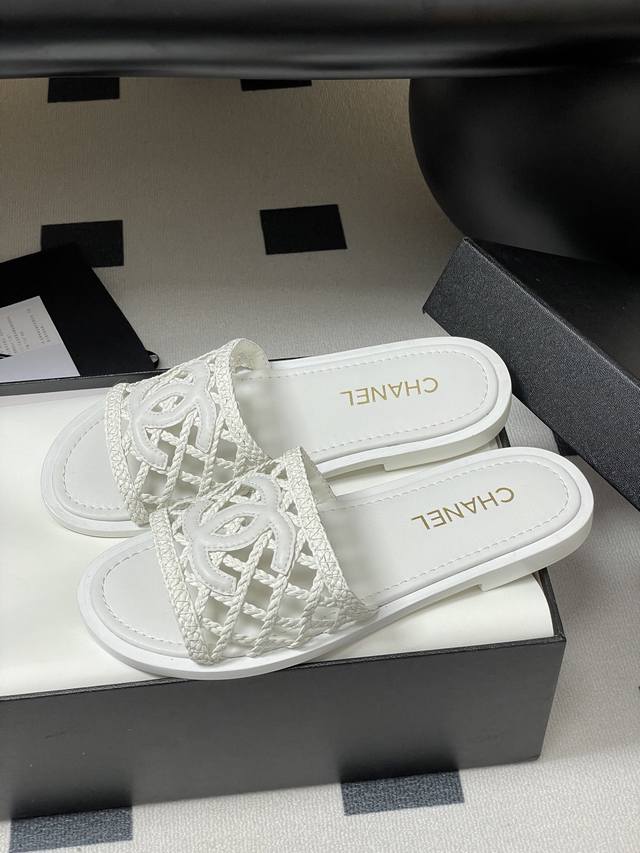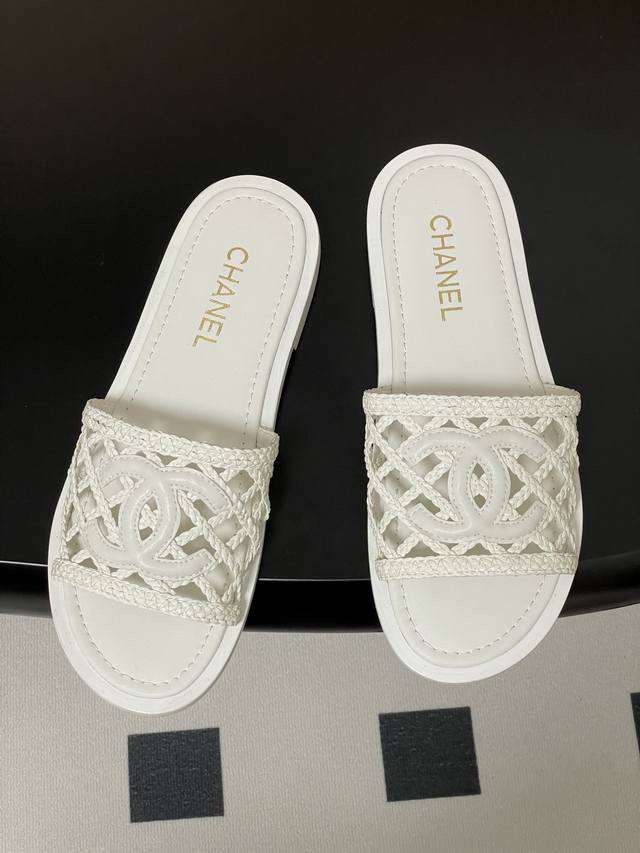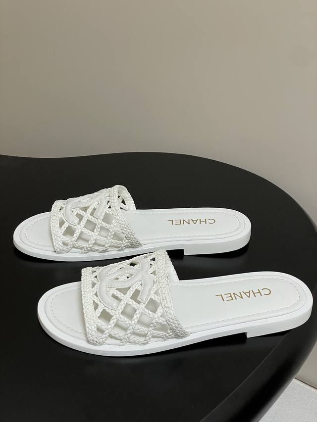 出厂价p DDD 26p夏季新款Chanel 小香经典双C一字拖鞋编织镂空平底凉拖鞋 DDD 尽显奢华格调。鞋面饰以标志性双 C 元素,搭配精致格纹编织,轻盈又优雅,细节之处满是品牌辨识度。简约的平底设计,贴合脚型,带来舒适穿着体验。无论是搭配休闲的、裙装,还是简约的,都能轻松提升时尚感,彰显穿着者的精致品味与优雅气质,是时尚人士打造精致造型的绝佳单品 DDD 鞋面:皮革手工编织 DDD 内里垫脚:羊皮 DDD 鞋底:意大利真皮大底 DDD 码数:35-39 40.41定做不退换 DDD